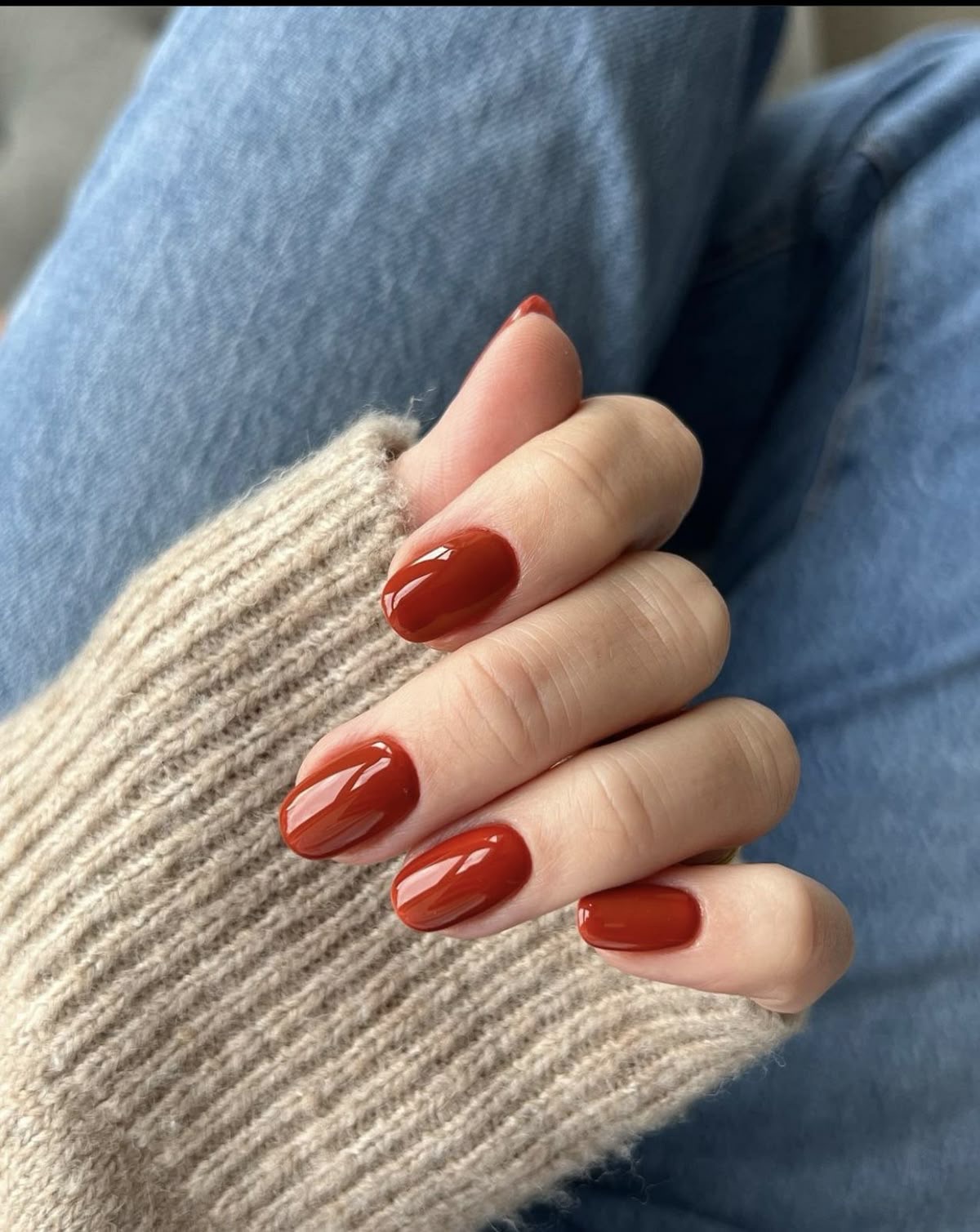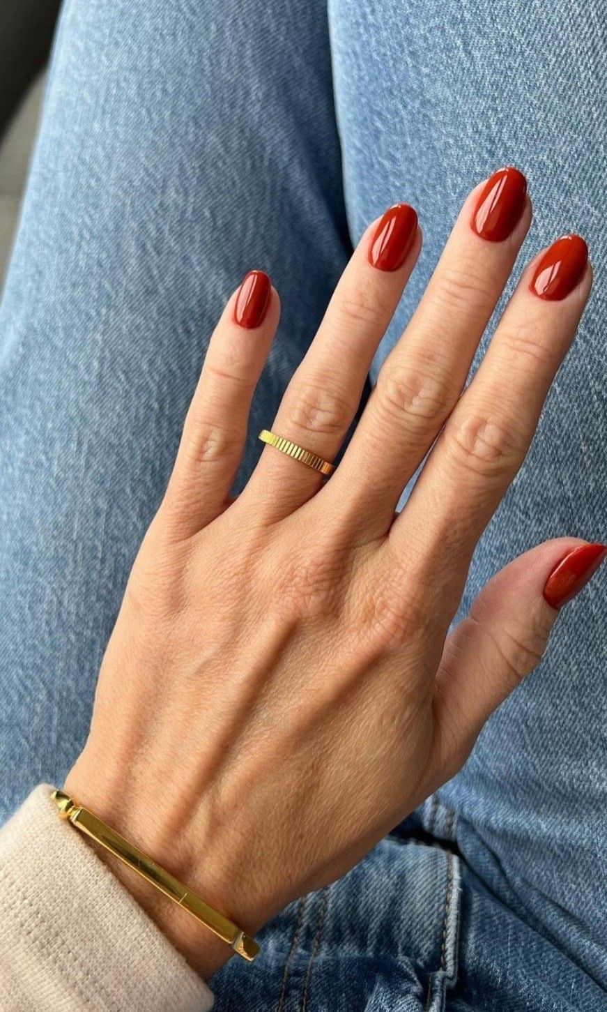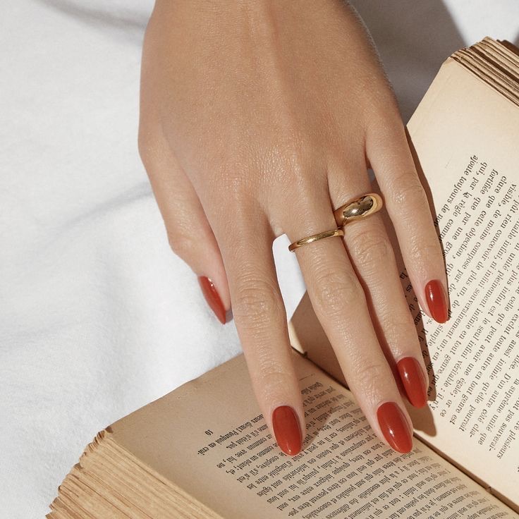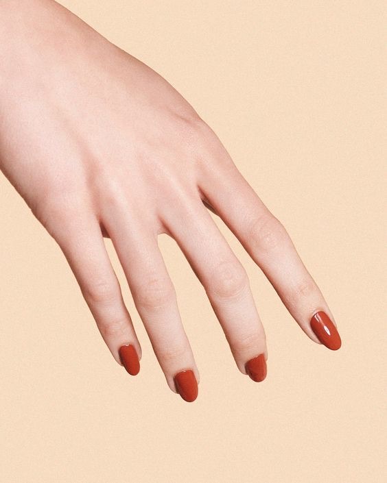 A piscar o olho aos tons terracota, o vermelho tijolo bebe inspiração nas cores quentes da terra e encaixa-se naturalmente na transição entre estações. Não tem a intensidade festiva dos vermelhos cereja nem a profundidade dramática dos vinhos escuros e é precisamente aí que reside o seu charme. É uma cor que aquece as mãos, favorece diferentes tons de pele e funciona tanto em unhas curtas como em formatos mais longos.