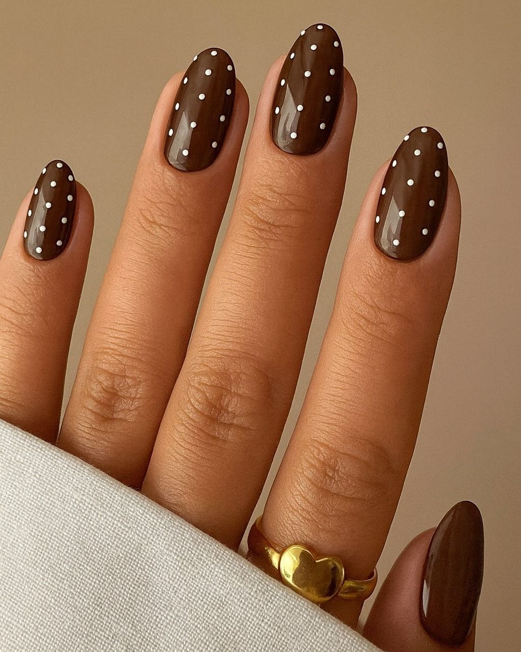 O truque para manicures poderosas passa por escolher o castanho que mais vai ao encontro do mood que quer atingir. Tons mais escuros, como chocolate ou exspresso, são a garantia de um look elegante e mais profundo, ao passo que os castanhos médios, como o mocha, taupe ou caramelo, são extremamente versáteis e funcionam em qualquer ocasião.