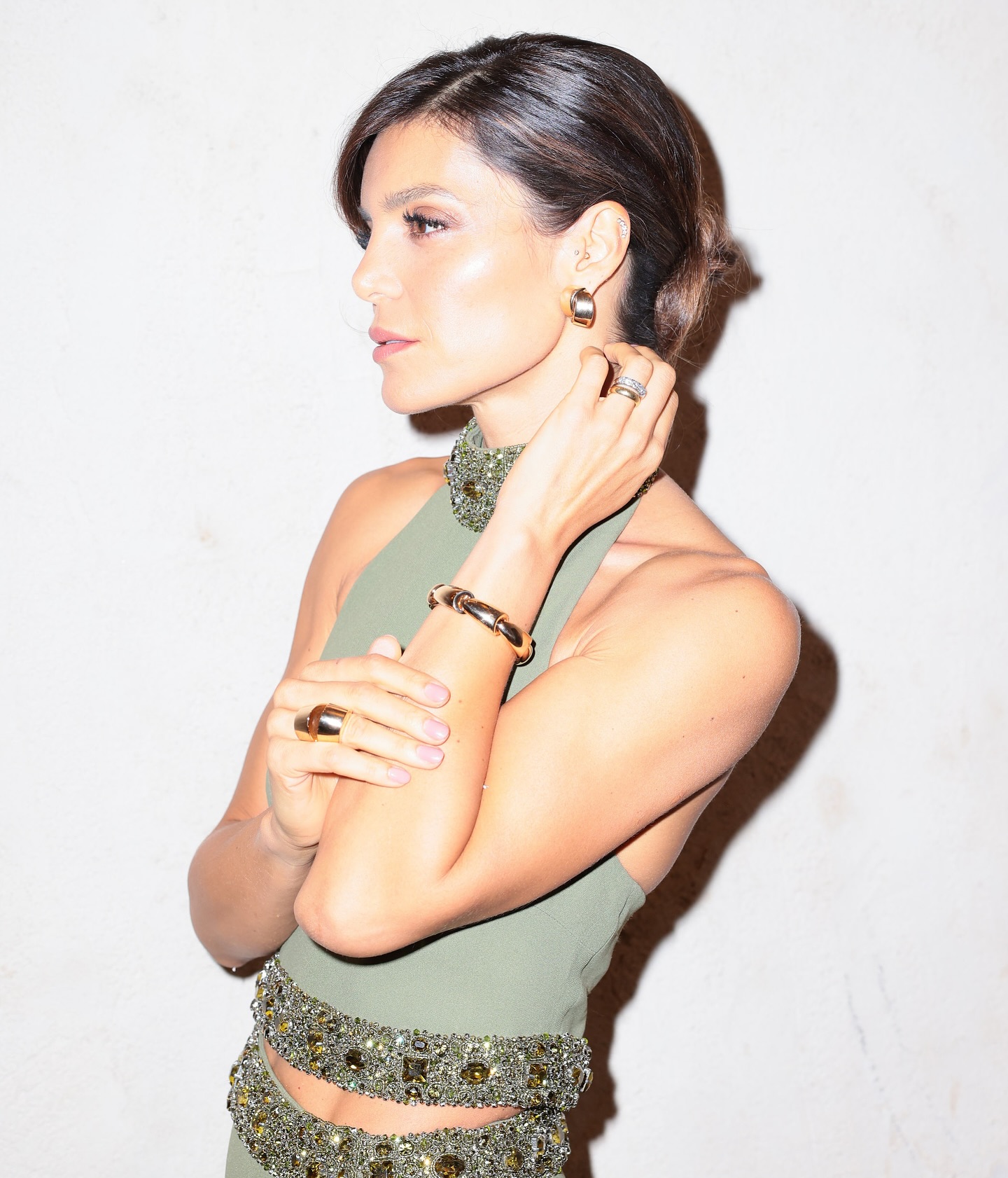 No caso de Raquel Strada, a estratégia foi clara desde o início. O vestido, da autoria de Nuno Abrantes, sem alças e com um corte que deixava os ombros em evidência, pedia um cabelo mais solto, capaz de equilibrar a sofisticação da peça com uma atitude leve e descontraída. A ideia era criar um look que tivesse frescura, mas que não perdesse elegância, um penteado que acompanhasse naturalmente o movimento do vestido e da passadeira vermelha.