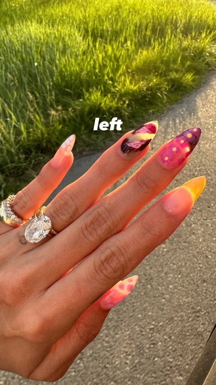 Afinal, as suas escolhas são coerentes com os momentos da sua vida. Já apostou em nail arts com margaridas e cristais durante a primavera, em unhas azul-marinho para celebrar o nascimento do filho, num amarelo a acompanhar o lançamento do Peptide Lip Tint Lemontini, da Rhode, ou de opções cores de vinho no Coachella.