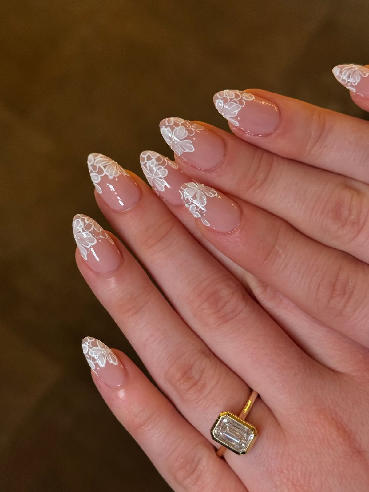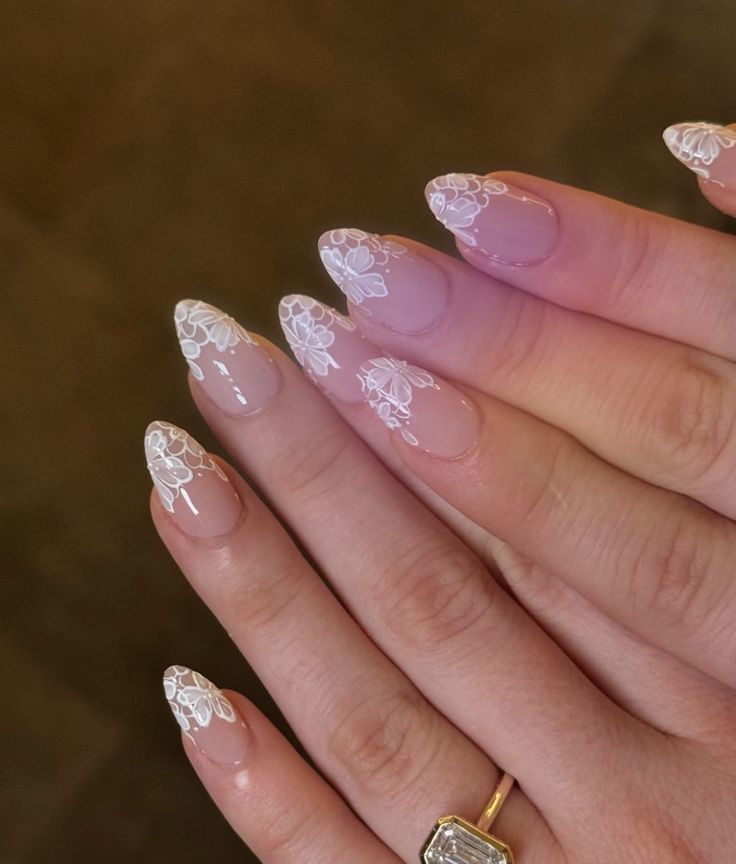 A maior parte destes desenhos nasce de placas de estampagem que transferem o padrão para a unha, democratizando a arte que antes só mãos profissionais conseguiam criar. O efeito final oscila entre transparente e opaco, como se as unhas estivessem vestidas com véus, flores e rendas geométricas. Nós reunimos algumas inspirações.
