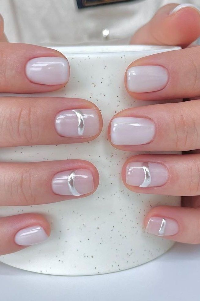 Uma das abordagens mais populares passa pela reinvenção da clássica manicure francesa. Em vez do branco opaco tradicional, o acabamento leitoso surge mais difuso, suave e esfumado, criando um efeito quase etéreo. Seja em versões mais clássicas ou com contornos ligeiramente desfocados, esta técnica oferece uma leitura contemporânea deste autêntico ícone da manicure.