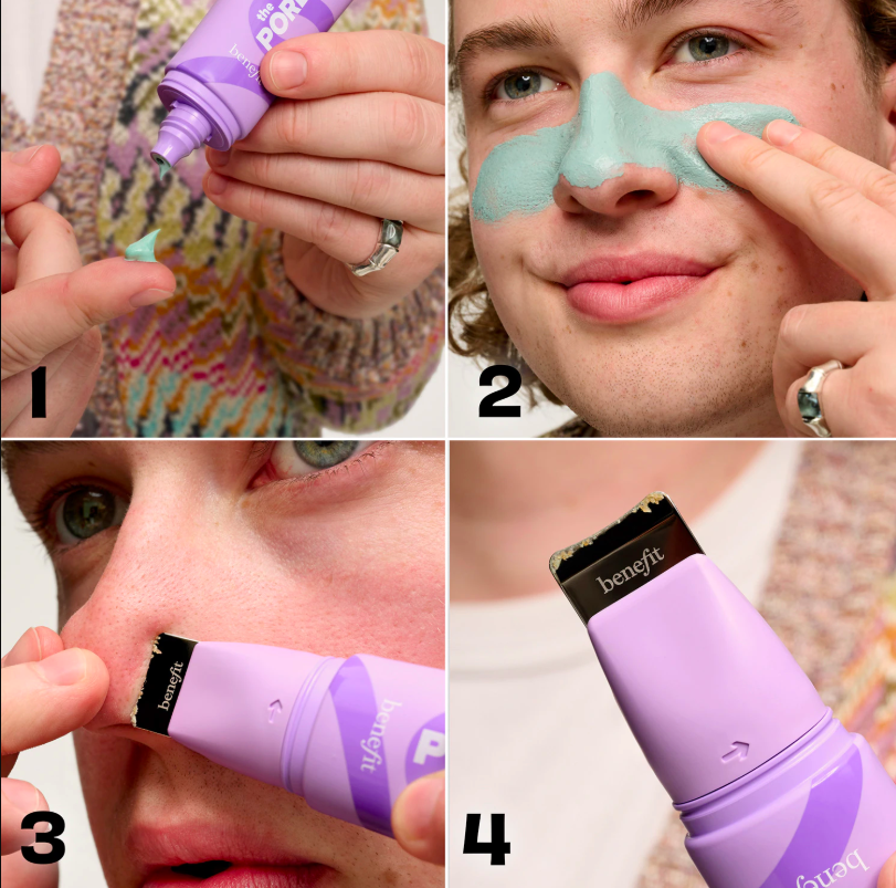 E não é nada complicado de usar. Basta retirar a ferramenta de extração, aplicar a fórmula nas áreas desejadas do seu rosto limpo e húmido, e aguardar 15 a 30 minutos. Depois, enxague o rosto, deslize a ferramenta sobre a pele húmida e enxague novamente. Se ainda houver resíduos, deixe a fórmula agir por mais tempo antes da extração.