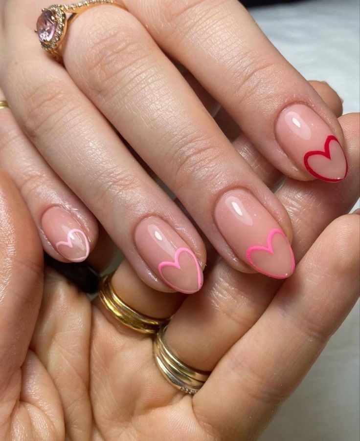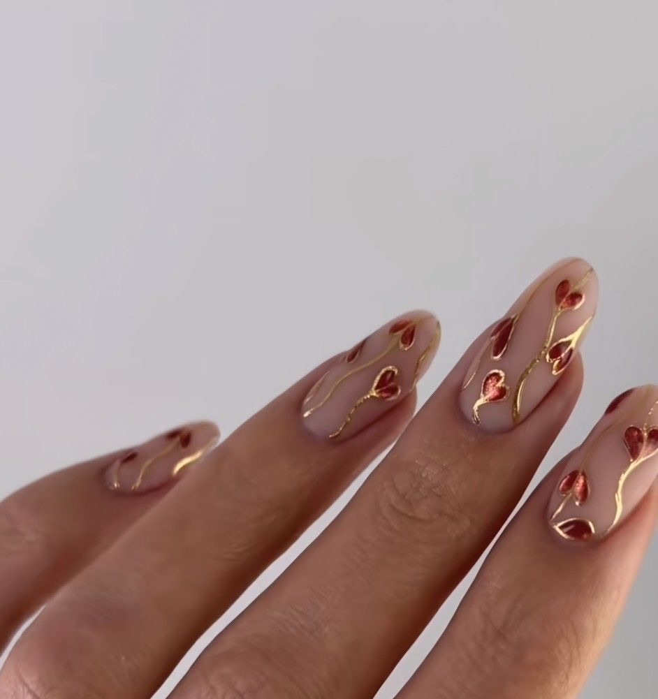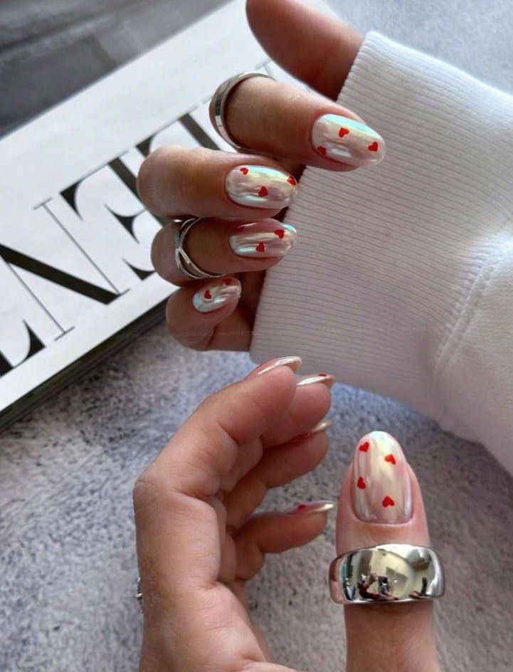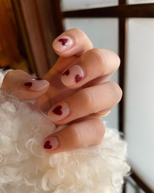Para quem prefere uma abordagem mais discreta, o minimalismo continua a ser o mais seguro, com bases nude ou transparentes emparelhadas com micro corações, pontos delicados ou desenhos quase impercetíveis, ideais para quem quer celebrar a data de forma subtil, mas cuidada. É também uma opção prática, fácil de manter e perfeitamente adaptável ao dia a dia.