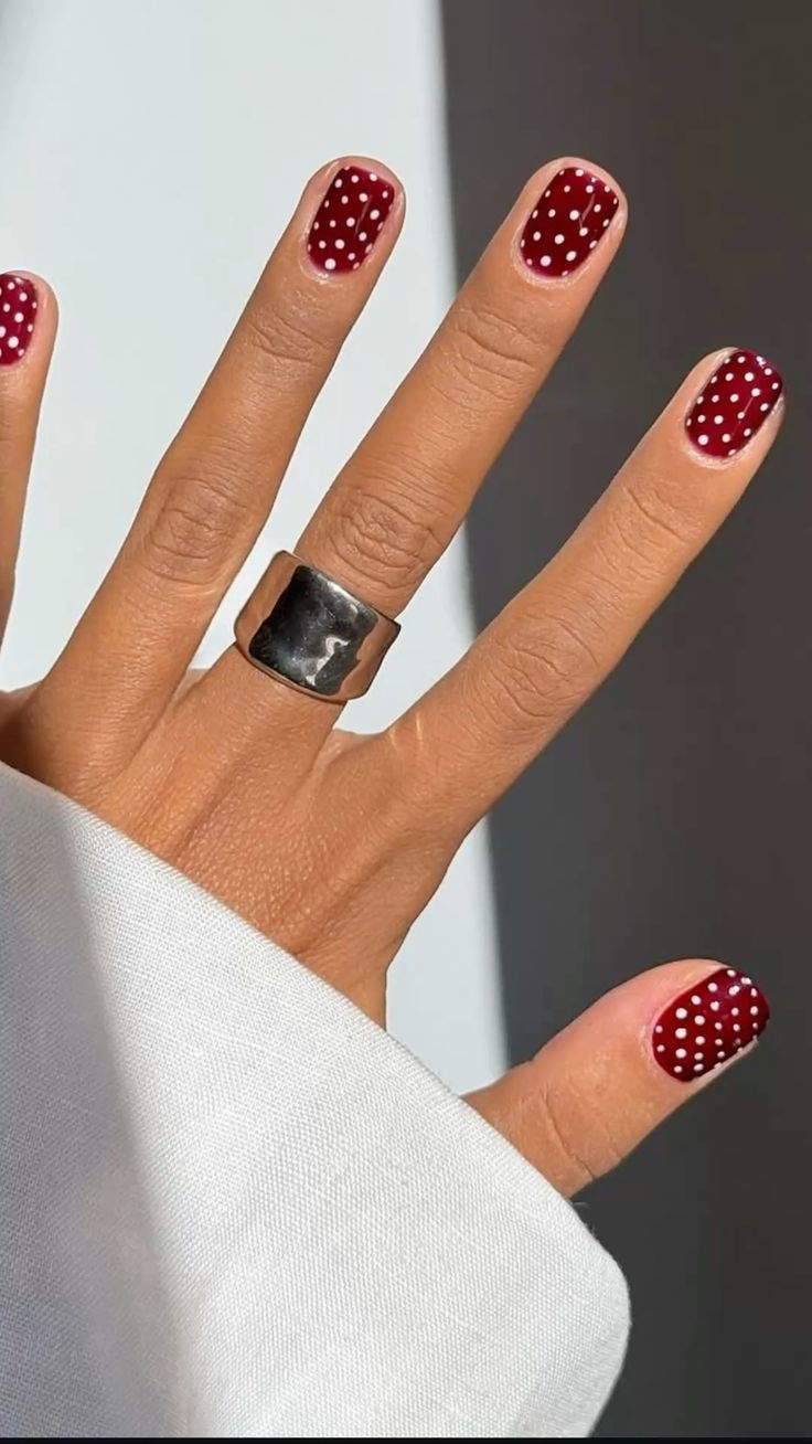 O mesmo se aplica à nail art, que transforma o look por completo. Em vez de cobrir as unhas todas com qualquer que seja o tom pelo qual opte, o vermelho pode surgir em detalhes, como uma uma meia-lua pintada na base, uma manicure francesa reinventada, degradés ou pequenas formas geométricas. Pode ainda elevar a fasquia e aplicar elementos decorativos, como cristais.