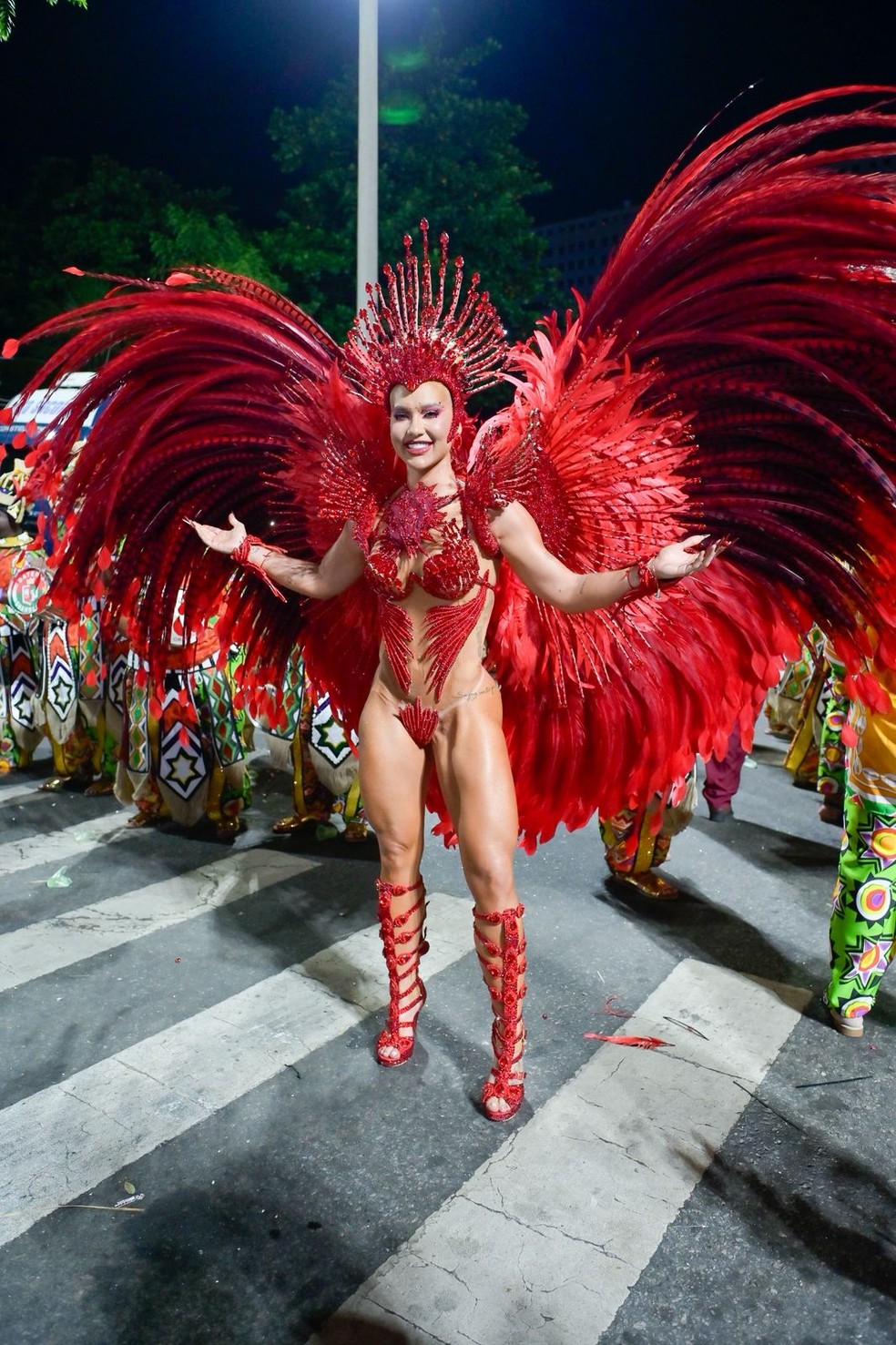 A influencer e empresária Virginia Fonseca fez a sua estreia como rainha da bateria da escola de samba Grande Rio no Carnaval do Rio de Janeiro, no Sambódromo da Sapucaí, esta terça-feira, 17 de fevereiro.