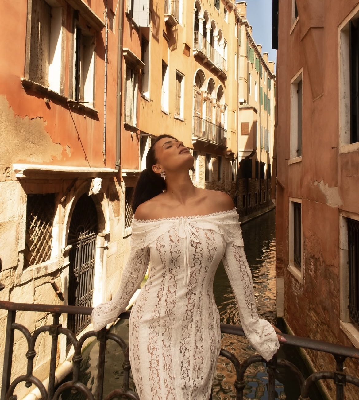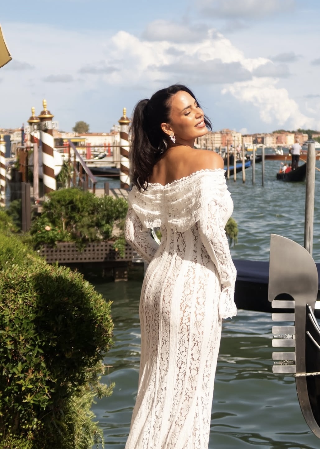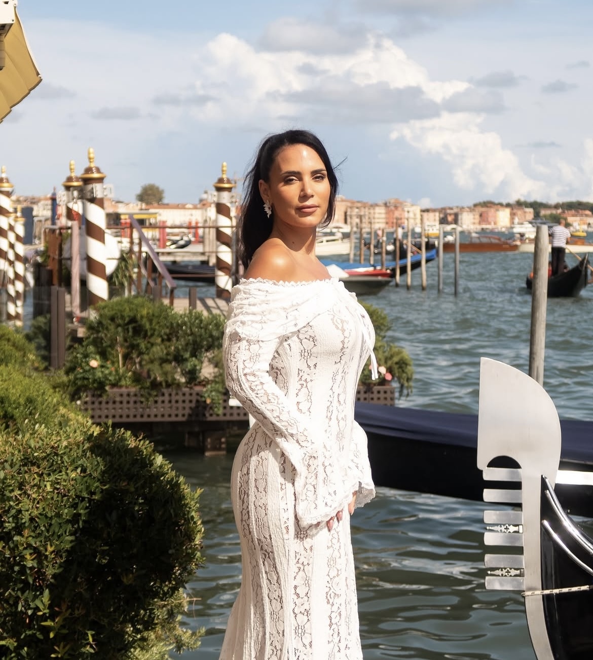 Aos 38 anos, Olívia Ortiz exibe uma forma escultural que ficou mais que evidente no vestido branco, em vibe praia e verão, com que se deixou fotografar em Veneza. A peça pertence à loja online Worlddress, e trata-se de um vestido em crochet, sem ombros, até aos pés e com uma silhueta de sereia, junto ao corpo.