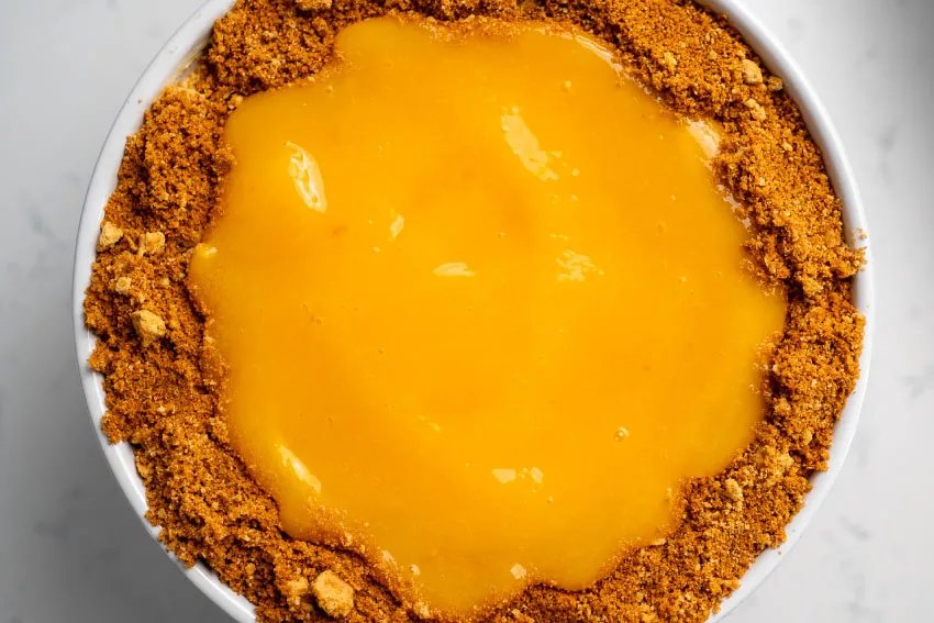 De seguida, parta as bolachas com a ajuda de um rolo de massa e divida-as por quatro taças, ou pela quantidade que desejar fazer. Cubra com a mistura anterior e leve ao congelador durante 2 horas.