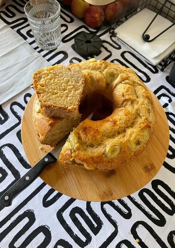 Num liquidificador coloque os ovos, o óleo, açúcar e quatro bananas e bata. Coloque a mistura numa tigela e junte a aveia, canela, fermento e a banana picada e misture delicadamente. Ponha numa forma untada e polvilhada com açúcar. Leve ao forno, pré-aquecido a 180ºC, durante 40 minutos.
