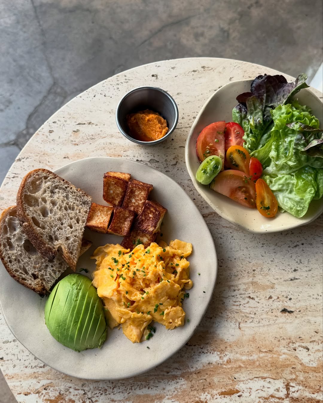 O menu inclui uma variedade de pratos saborosos, como: simple breakfast (12€), miso shakshuka com camarão (14€), tosta de abacate (12€), ovos benedict (14€), hamburguer com batatas fritas (14€), espetadas de porco e novilho em pão pita (16€).