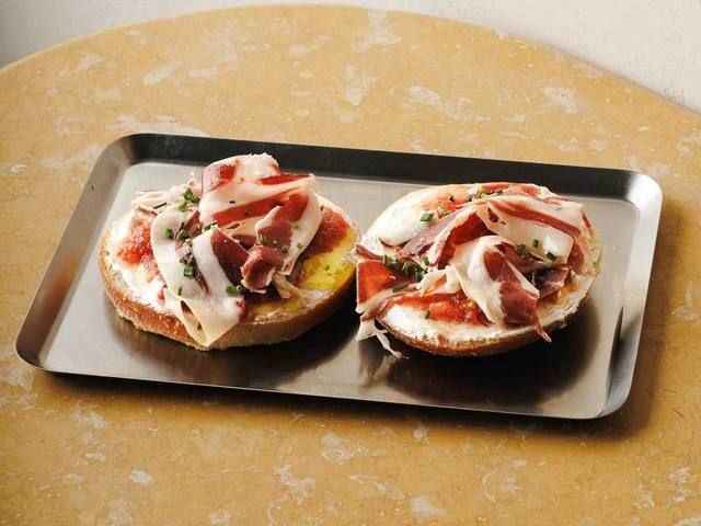 O menu do Beco Bagels conta também com opções especiais, entre os quais o tumaca e presunto de proco preto (12€), o de pastrami com queijo raclete braseado e pickles de pepino (14€) e o rosbife com rebentos de mostarda (14€). Para os mais gulosos, há bagels doces, como o de manteiga de amendoim e doce de framboesa (7€), manga, leite condensado e coco (7€), mirtilos e cacau (8€) e pistáchio (8€).
