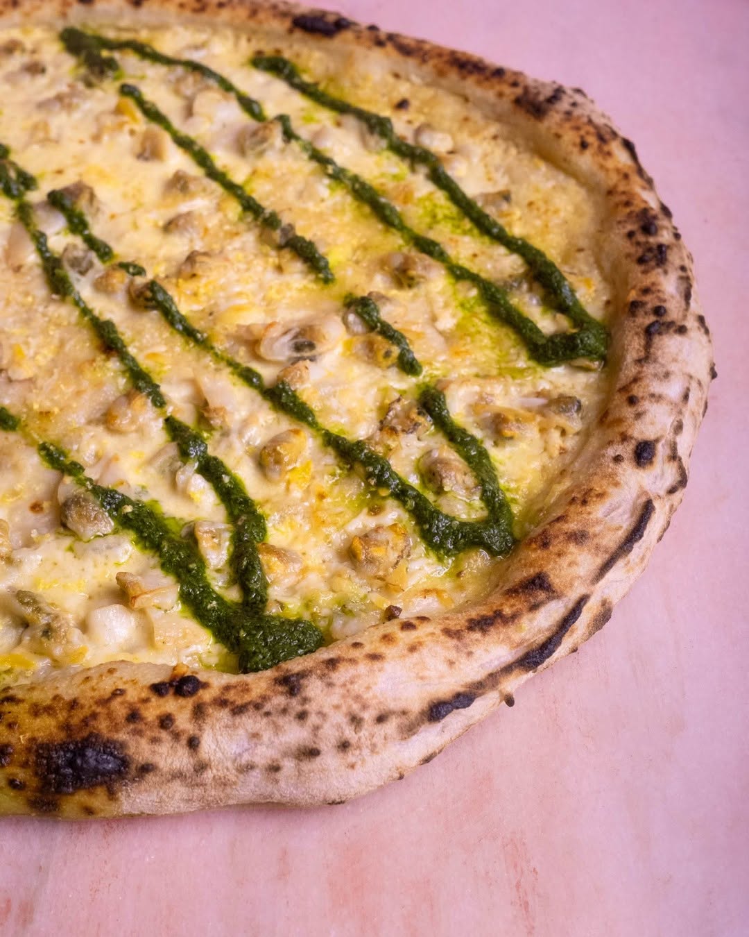 Na JezzusPizzaria, consegue provar a pizza Bulhão Pato (16€). Esta criação inspirada no prato tradicional português tem creme de vinho branco, coentros, azeite, mozzarella fior di latte, amêijoa, pecorino, pesto de coentros e raspa de limão.