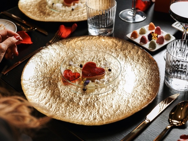 No Matiz Lisboa, o amor é celebrado com um jantar romântico com assinatura do chef executivo Daniel Schlaipfer. Acompanhado de música ao vivo, o menu do Dia de São Valentim começa com um cocktail de boas-vindas: foie gras sedoso com pipocas crocantes e algodão doce a contrastar.