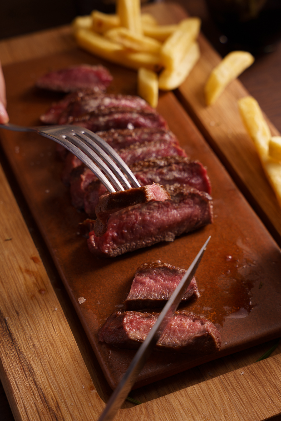 O bife Blade, o protagonista deste conceito monoproduto, não fica atrás. Pode conjugá-lo com os acompanhamentos, cuja qualidade não lhes permite serem secundarizados (por isso, faça questão de arranjar espaço no estômago para eles): puré de batata com manteiga de trufa e sprinkles crocantes de tempura (3,50€), arroz de cogumelos com espuma de cogumelos e parmesão (3,50€) e esparregado com parmesão, natas e noz-moscada (3,50€). E não se esqueça de os envolver antes de "atacar".