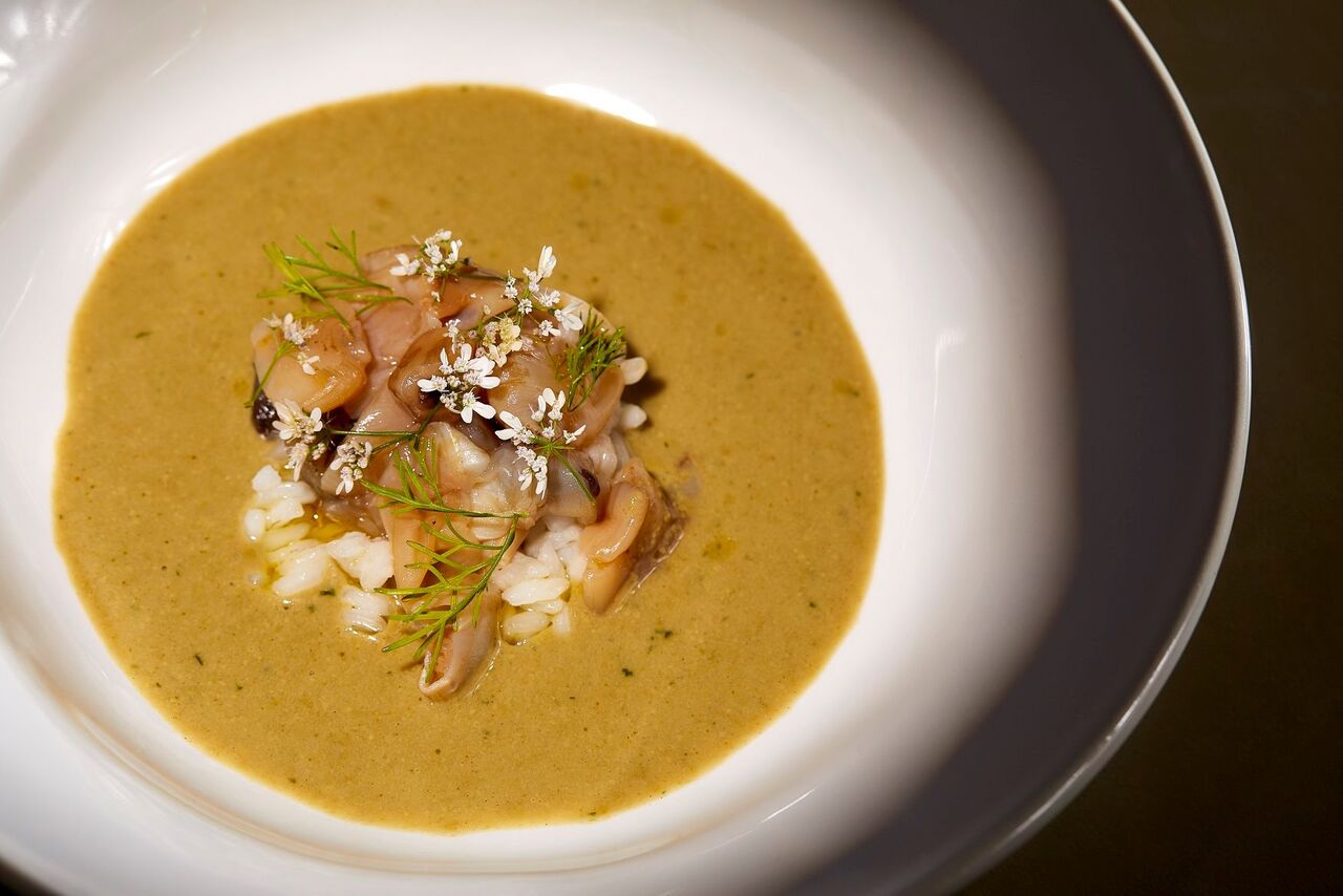 Na carta do Taberna Albricoque apenas encontra uma opção de sopa que o vai deixar a pedir por mais. Aqui, pode encontrar a canja de lingueirão (12€), uma opção cremosa com bagos de arroz a nadar no caldo e com o marisco ligeiramente passado com a água da cozedura. Para acompanhar, o menu conta com vários pratos do dia, entre eles xerém de tamboril com lagosta (40€ para duas pessoas), raia alhada (18€) e galinha cerejada com marmelo e amêndoas (16€).