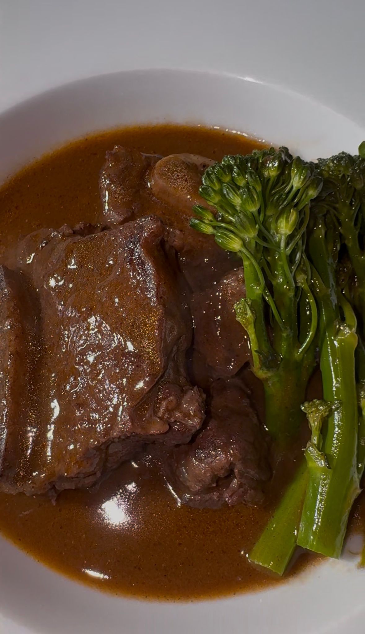 Carne estufada em vinho tinto com molho aveludado e legumes