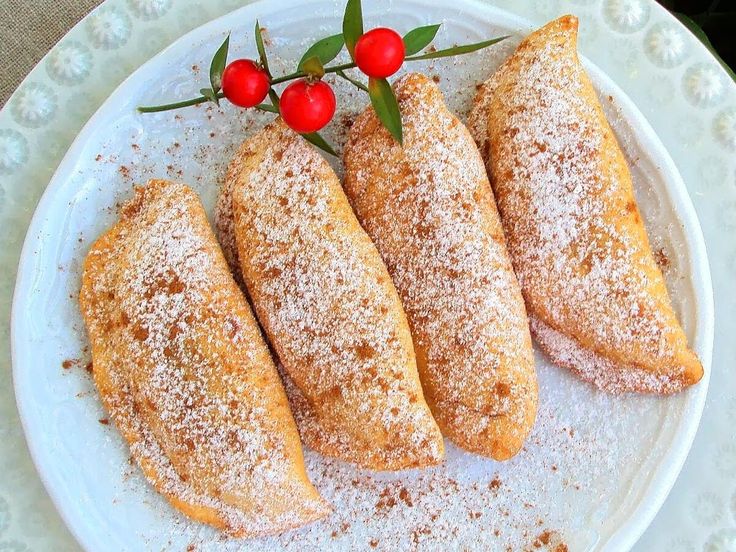 Estenda a massa numa superfície enfarinhada até ficar bem fina, coloque pequenas porções de recheio ao centro de cada círculo, humedeça as bordas com água e dobre, pressionando para selar. Corte com um cortante ou copo, dando formato de rissol, e frite em óleo bem quente até dourarem de ambos os lados. Escorra sobre papel absorvente, polvilhe com açúcar e canela e deixe arrefecer.
