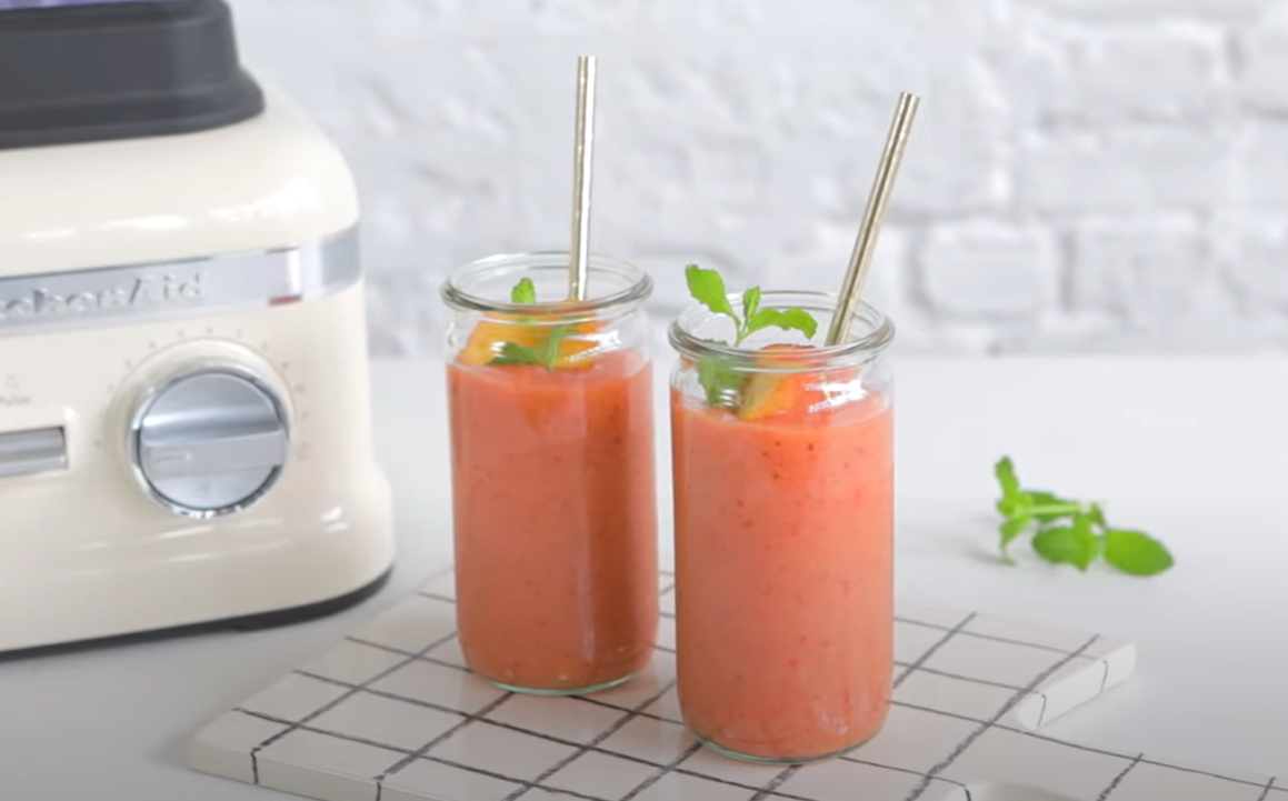 Smoothie de manga, pêssego e morango