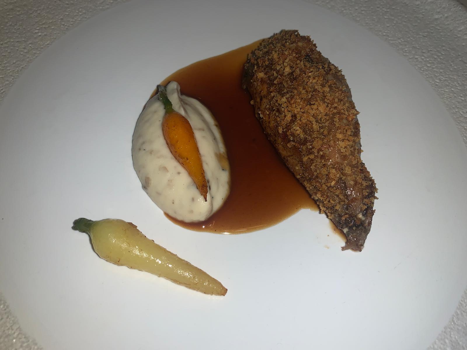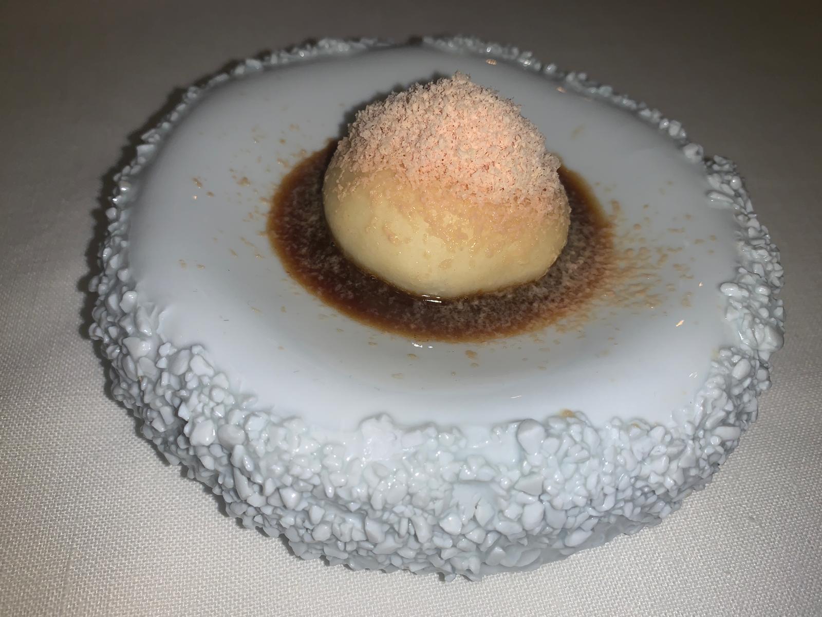 António Guerreiro sugeriu-nos o branco de Óbidos Nogueira, uma colheita de 2017 onde sobressaem notas de tosta e especiarias. Foi com ele que brindámos ao bolinho de pato a vapor com molho e neve de foie gras, um dos destaques da noite. Se conforto tem um sabor, é este.