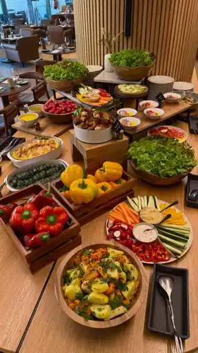 O brunch decorre no restaurante The Kitchen, um espaço moderno e acolhedor onde o destaque vai para o showcooking de carnes e churrasco, preparados ao vivo. Apesar do formato buffet, os clientes podem contar com estações interativas de massas frescas e carnes grelhadas no momento, que garantem frescura e personalização ao gosto de cada um.