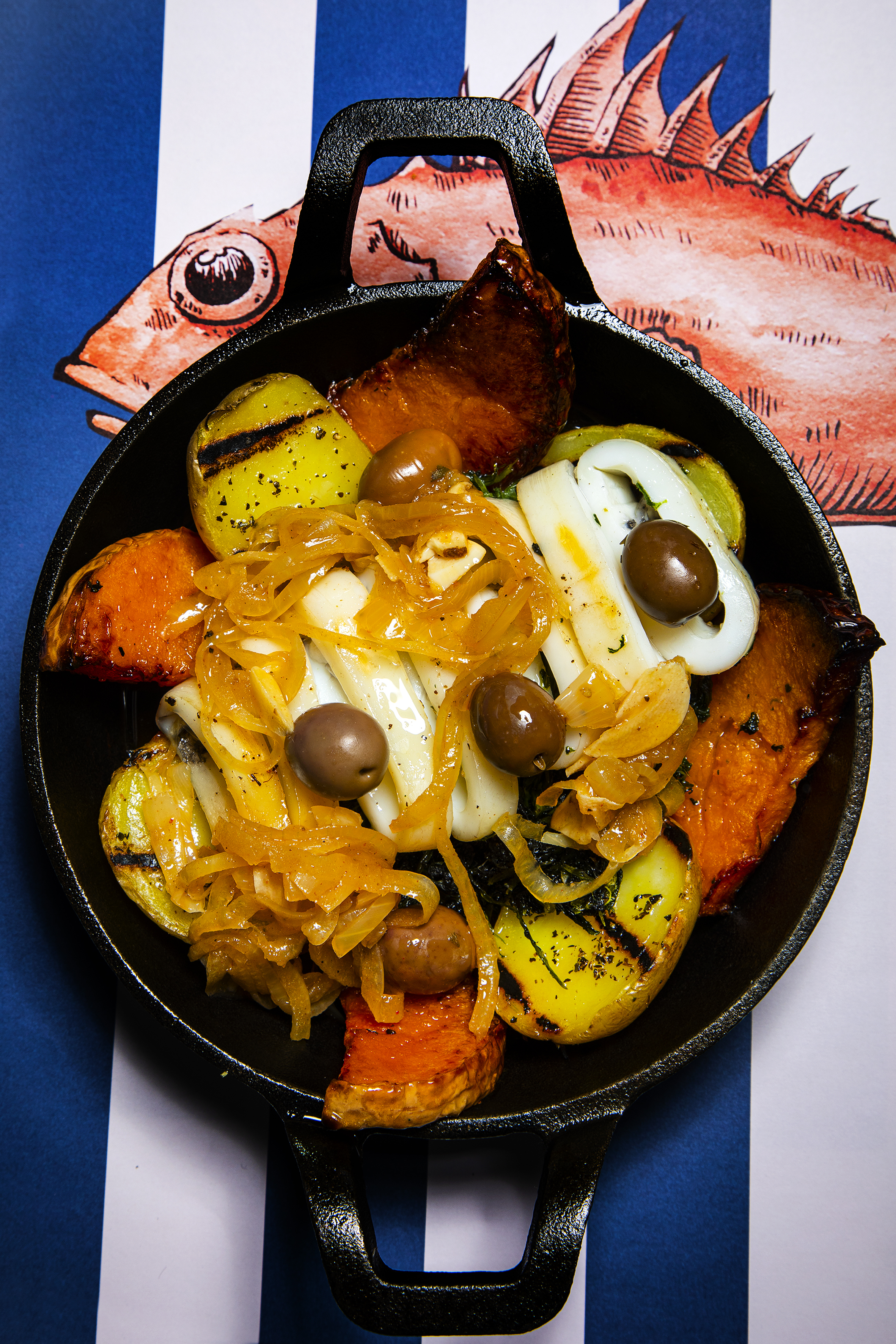 À segunda-feira, a sugestão passa pelo arroz malandreco de camarão e algas, sendo que, à terça, o bacalhau grelhado assume o protagonismo. À quarta-feira surge a lula à Lagareiro com abóbora, à quinta-feira poderá lambuzar-se com um bitoque de atum e dióspiro, sendo que a sexta-feira fica reservada para a feijoada de choco e castanhas.
