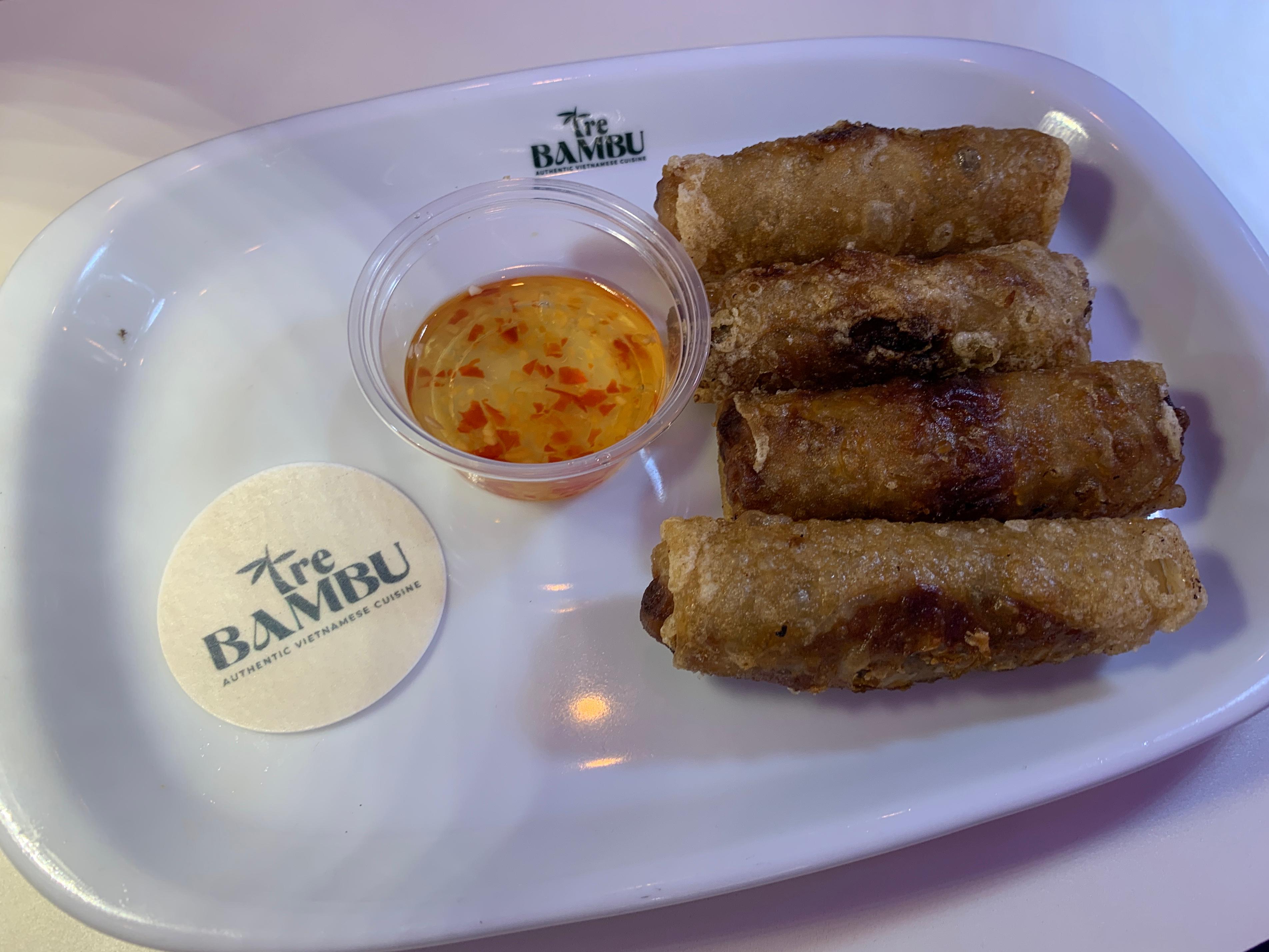 O gelato italiano da Mú viria limpar o palato com um sorvete com sabor a Lambrusco. O copo pequeno com dois sabores custa 2,50€, o médio, com três, é 3,40€ e o grande, com quatro, é 4€. Depois desta pausa, viajaríamos para a Ásia, com os rolinhos vietnamitas com vegetais, arroz vermicelli e carne de vaca (7€) da Tre Bambu.