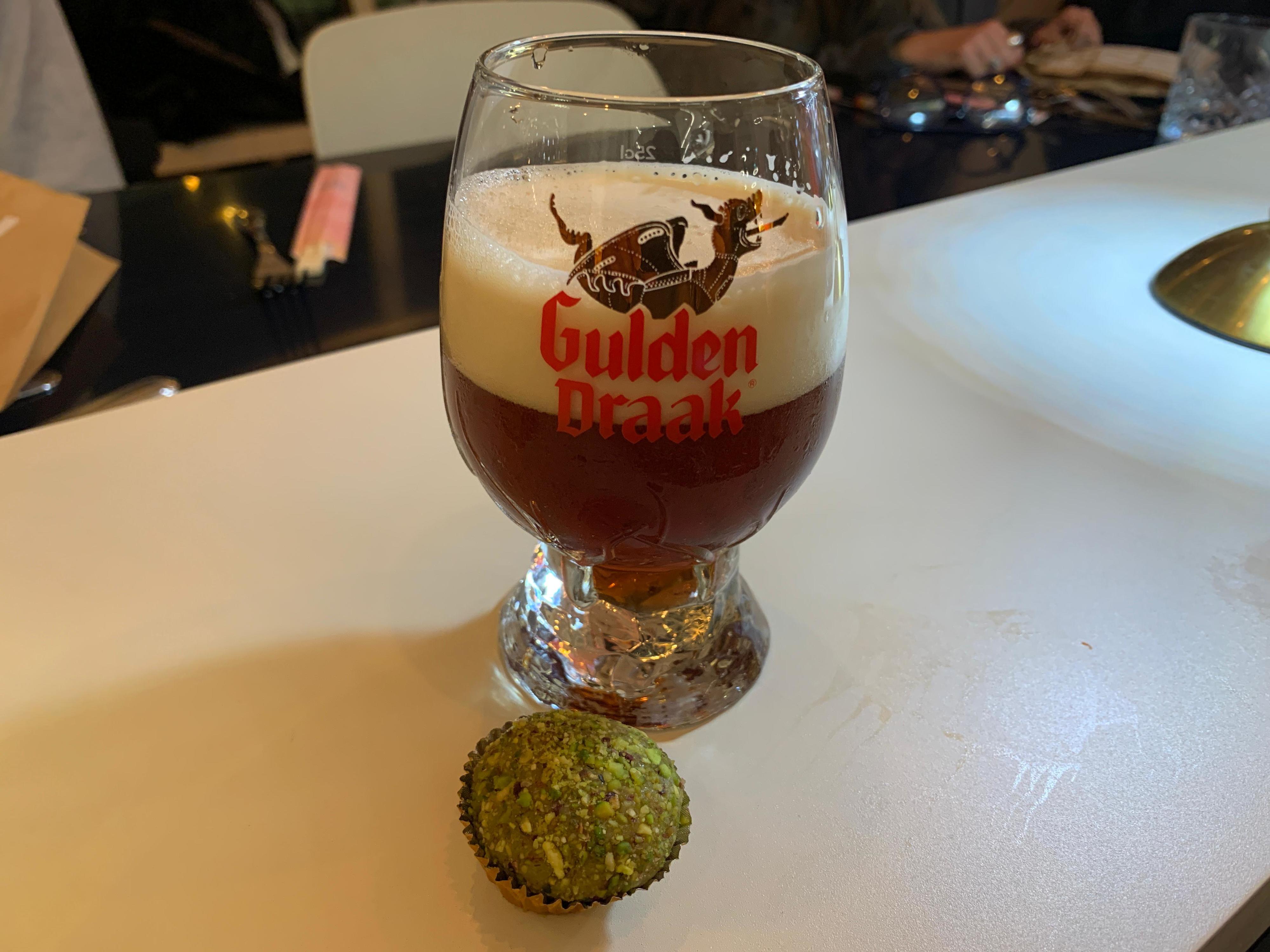 Do Brasil, mais concretamente do Feel Rio, chegava-nos uma mini empada de frango com queijo catupiry (1,85€). Para terminar, um brigadeiro de pistácio, uma cerveja belga da Gulden Draak (20cl por 4,30€ e 33cl por 6,50€) e um éclair clássico (1€ o M e 1,40€ o L) da Leitaria da Quinta do Paço.