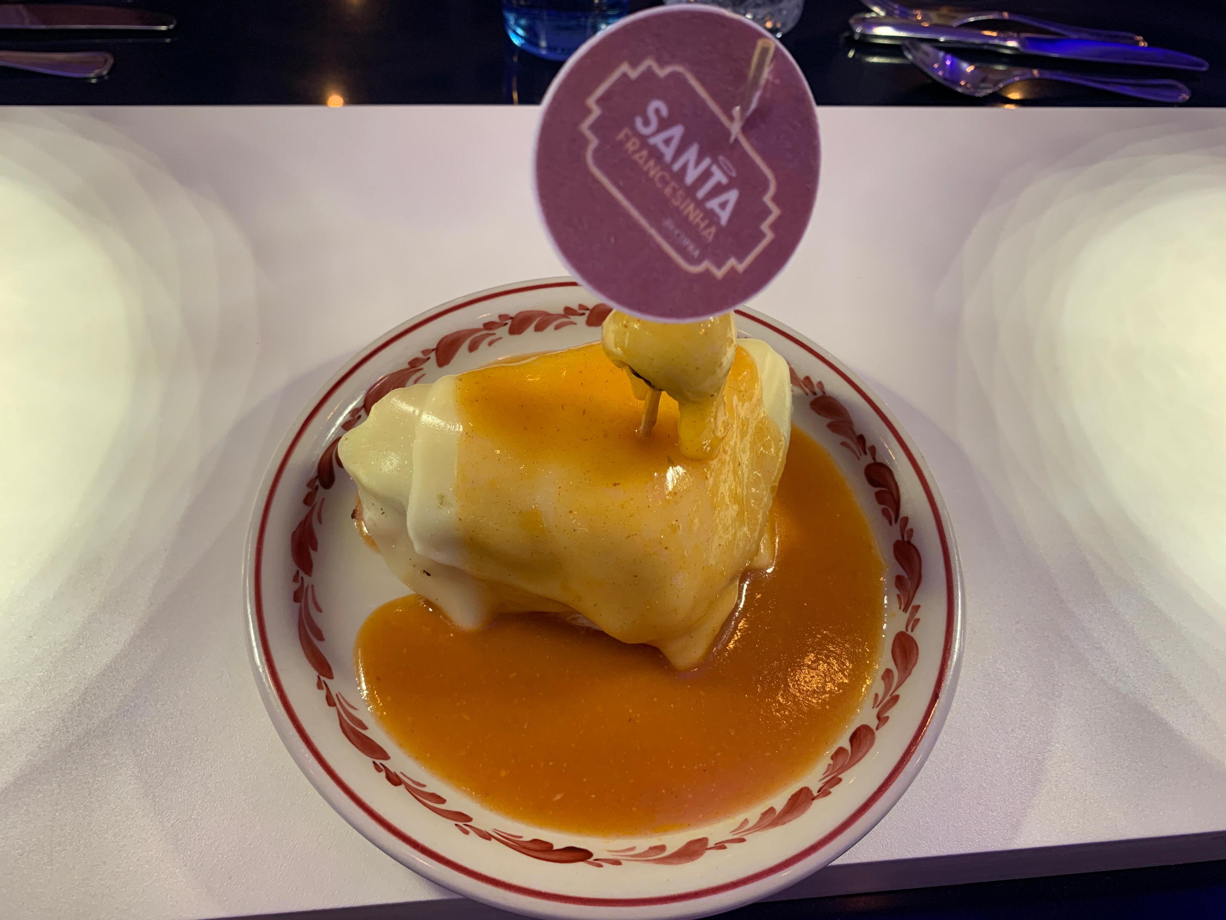 Continuaríamos em território nacional com a chegada de uma mini francesinha da Santa Francesinha. A versão mini custa 9,50€ e traz fiambre, mortadela, linguiça e salsicha fresca, bife de vitela, bacon fumado, pão de forma, queijo, ovo, batata e molho. Ainda nas versões menores, chegou-nos uma mini sande de leitão (3,40€) do restaurante O Forno do Leitão do Zé.