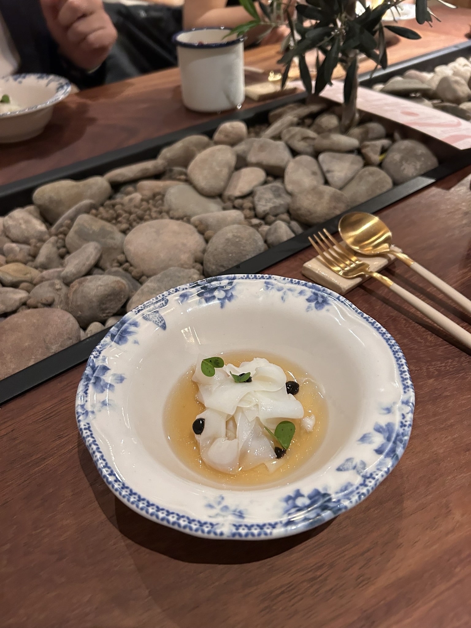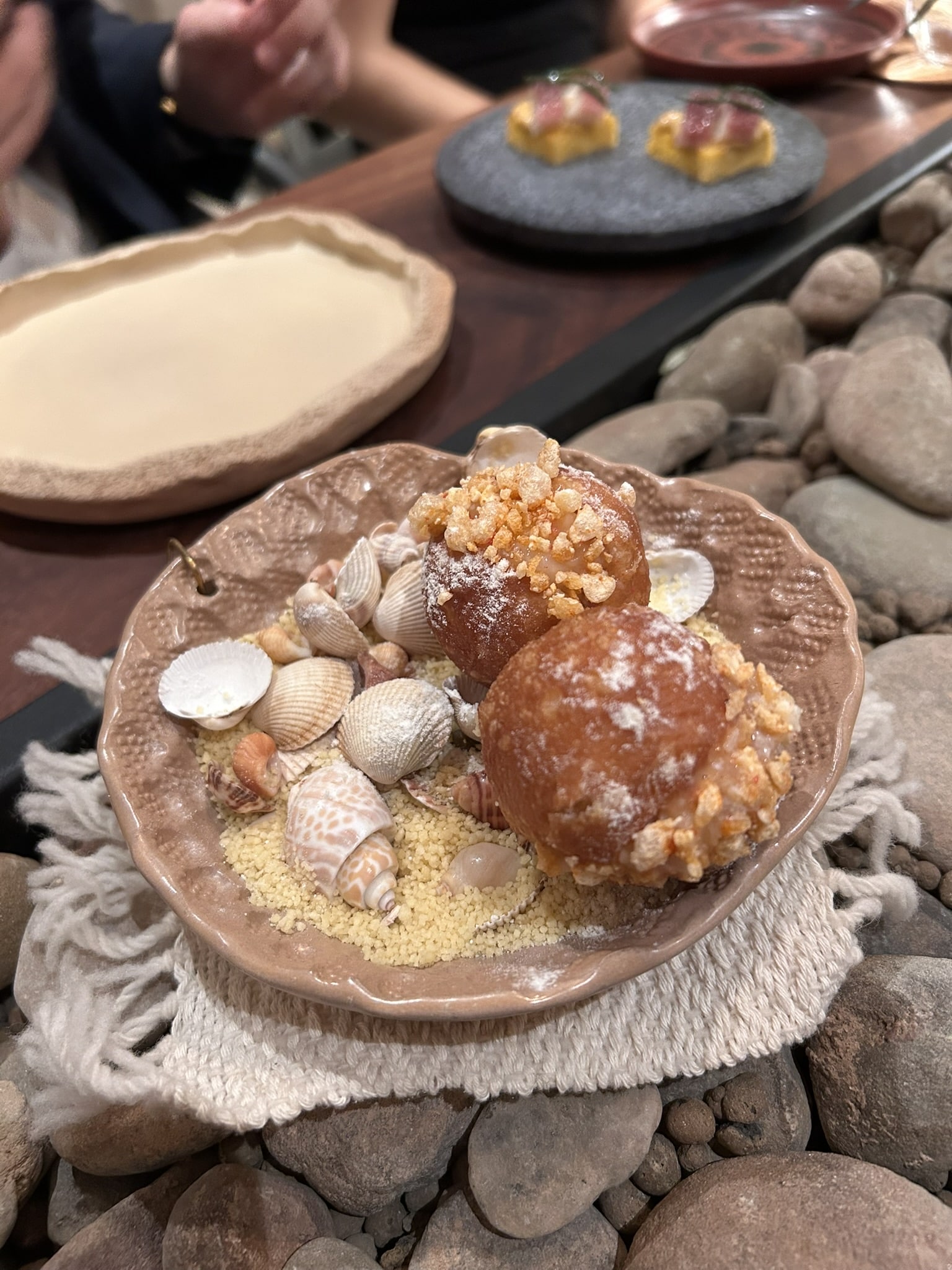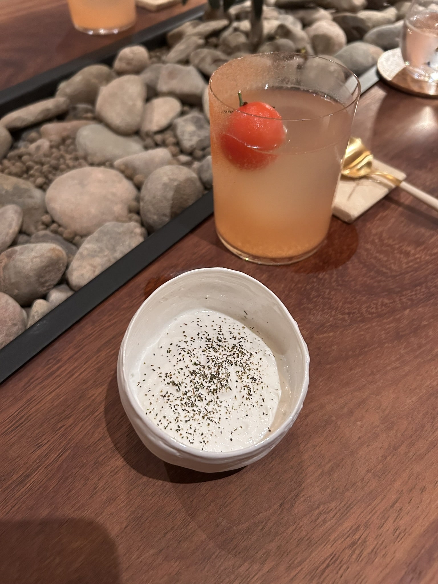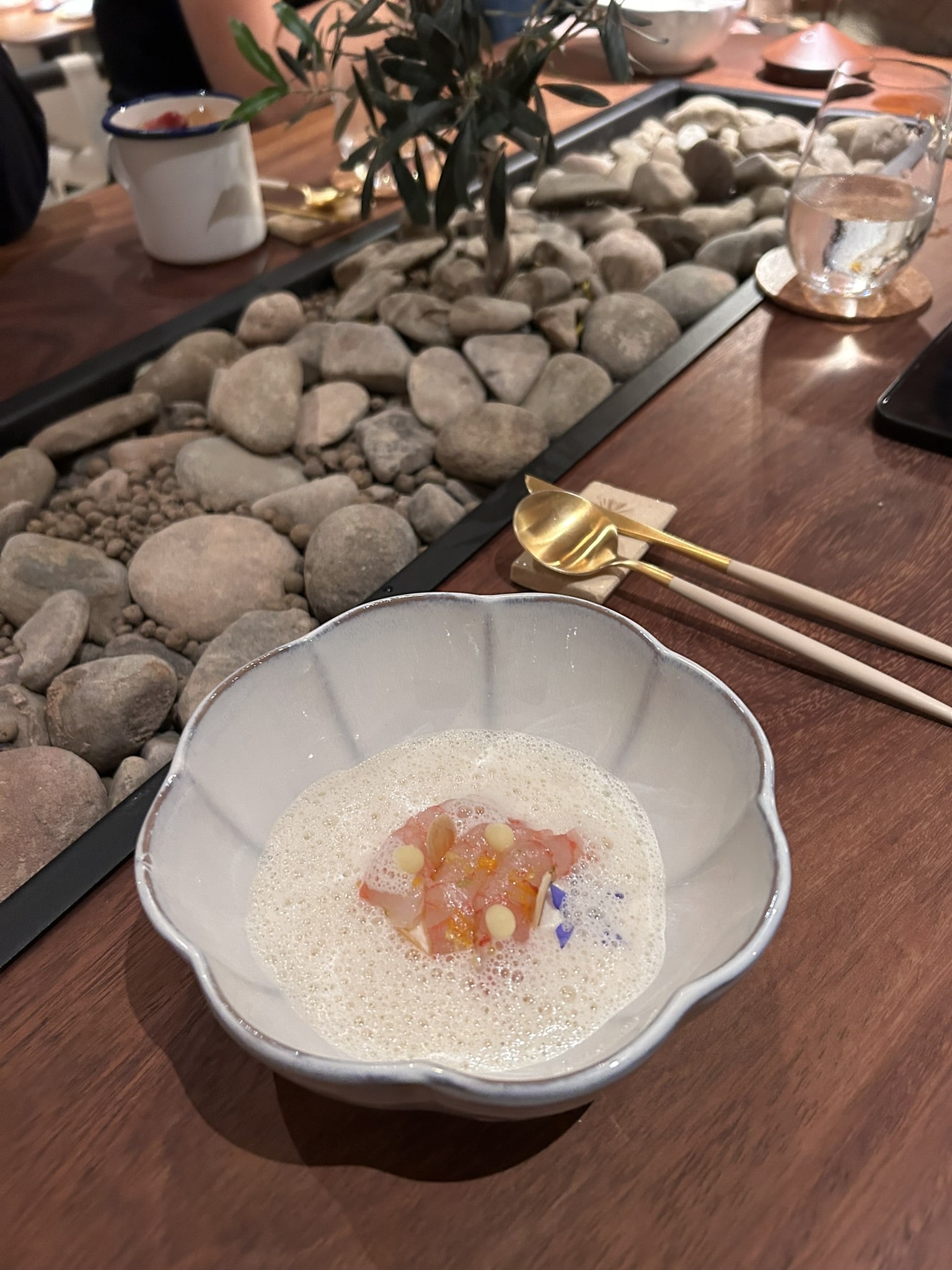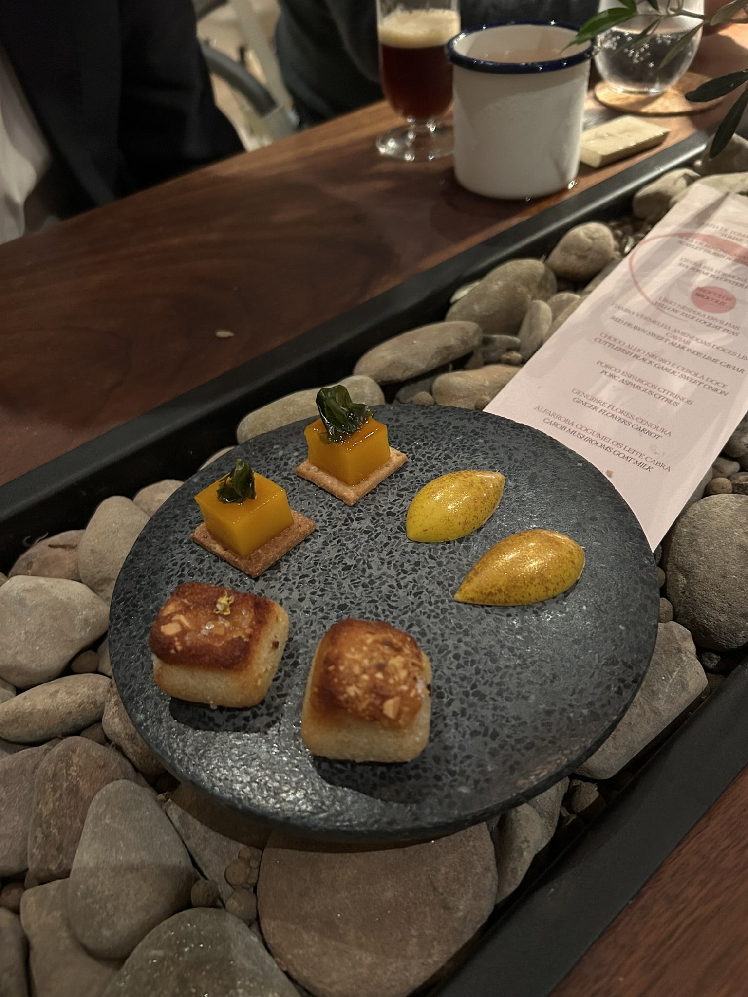 Em mesas altas e sofisticadas ou em mesas mais intimistas, o primeiro momento não faz parte do menu em si, uma vez que é apenas um cocktail de boas-vindas, mas a experiência começa logo assim que colocar o pé dentro do Solalua. Ao sentar, irá ter o menu diante de si, e é aí então que vai descobrir a viagem gastronómica que vai fazer ao longo da noite - neste primeiro jantar, podemos já dar o spoiler que foi extraordinária, com alguns pontos mais fortes do que outros, mas a experiência em si é, certamente, para repetir.