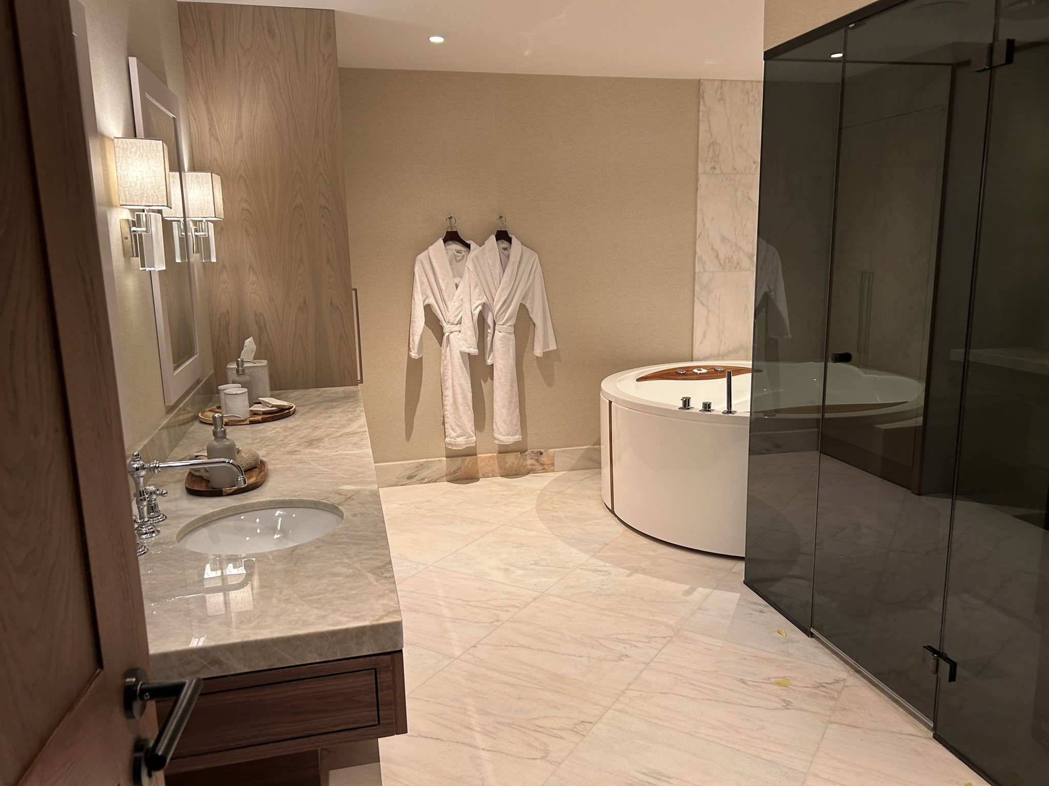 A MAGG teve a oportunidade de ficar numa residência T1, e a experiência é mesmo sem igual. Com um terraço grande o suficiente para, no mínimo, 10 pessoas, com sofás e uma mesa de refeições, além do outro terraço com duas espreguiçadeiras e um jacuzzi privado, a acomodação tinha tudo o que era preciso para ficar no Viceroy at Ombria Algarve sem precisar de ir a lado nenhum. Com cozinha, casa de banho com banheira e duche, uma pequena varanda no quarto, um sofá confortável e a possibilidade de conectar o computador à televisão, não há nada mais que possamos pedir.
