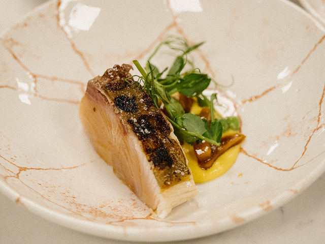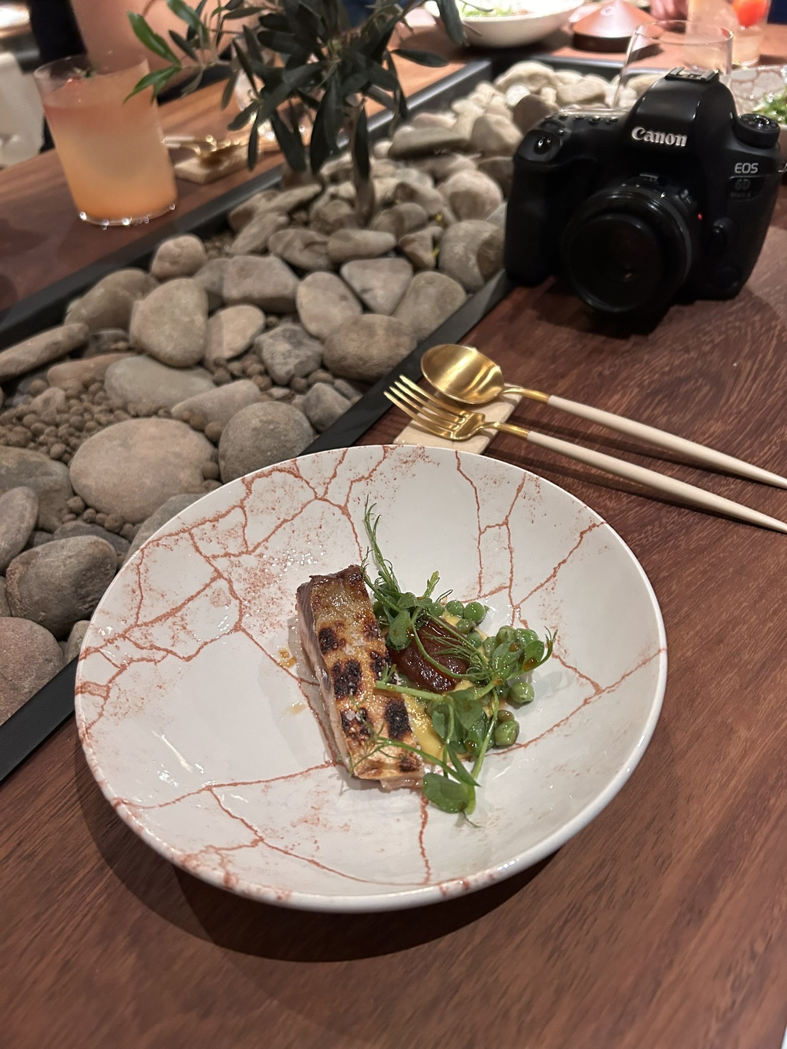 A MAGG teve a oportunidade de fazer parte do primeiro jantar Eclipse, onde estiveram os chefs Pedro Pinto, do Solalua, e Vasco Coelho Santos, do restaurante Euskalduna Studio que conta com uma estrela Michelin. O ambiente é extremamente acolhedor, com luzes baixas e uma envolvência intimista, uma vez que cada jantar só leva 25 clientes. O ritmo da refeição é calma e pensado ao detalhe, quase como se cada prato fosse uma pausa para respirar, o que concede logo pontos extra ao momento.