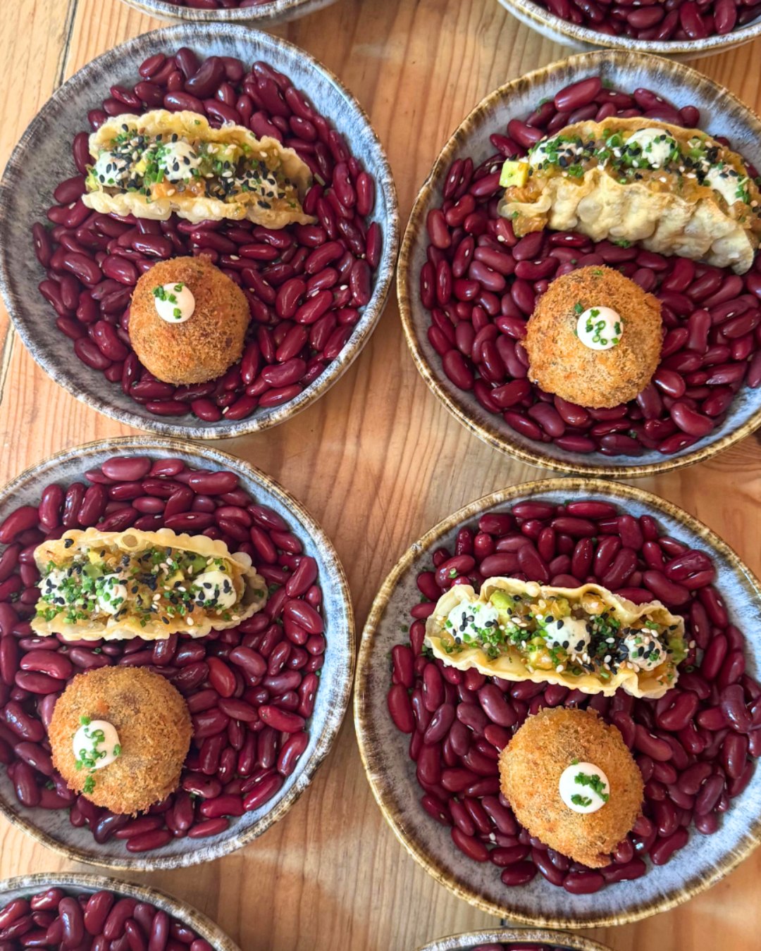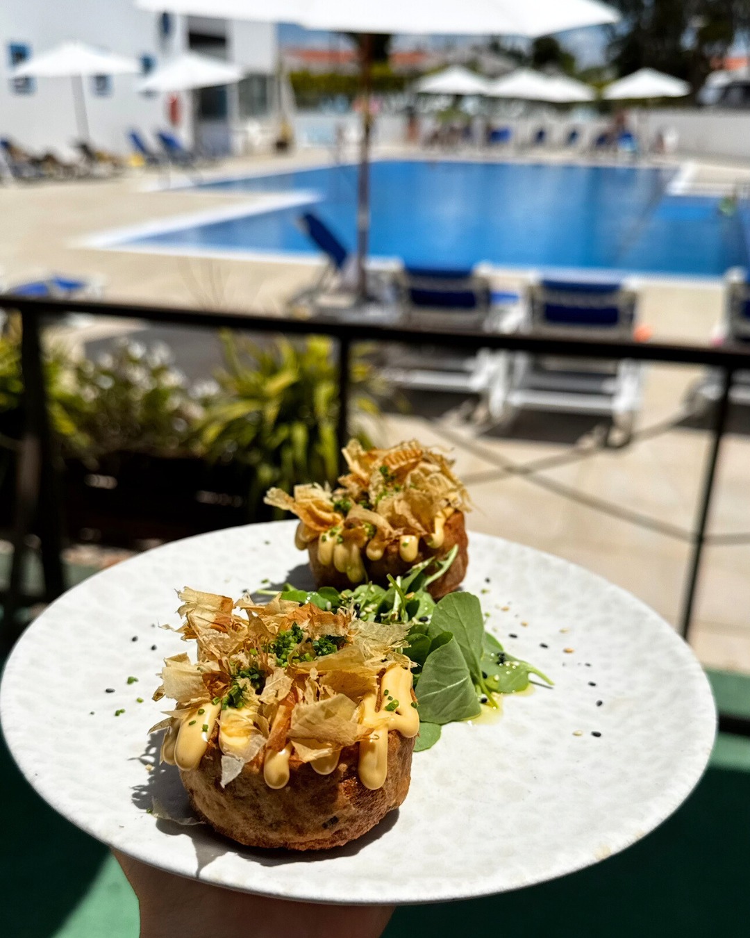 Os petiscos para partilhar incluem pataniscas de polvo com agrião (13,50€/2un) e tártaro de peixe do dia com batata doce (15€), mas também há tacos de legumes (14€/3un), nasi goreng com tofu (19€), peixe de anzol com açorda de ovas (24€), feijoada de bacalhau (22€) e sopa de peixe (15€).