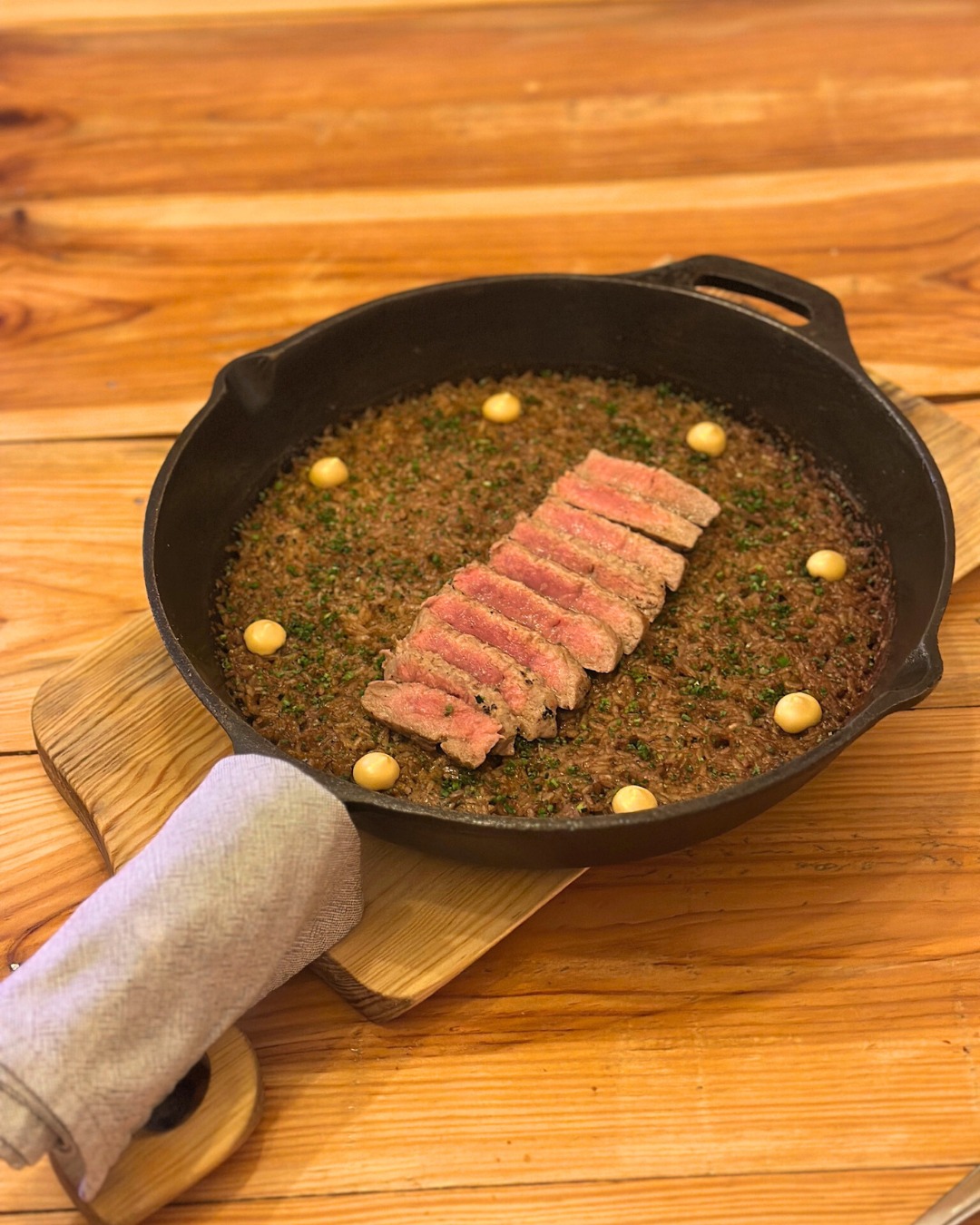 A lista continua com a vazia de pasto alentejano com arroz bomba (32€) e o churrasco de brisket com batata rústica e alface (23€). Quanto às sobremesas, que custam 7,50€, pode deliciar-se com sericaia com sorbet de limão e cannoli de pastel de nata, canela e gelado de café, por exemplo.