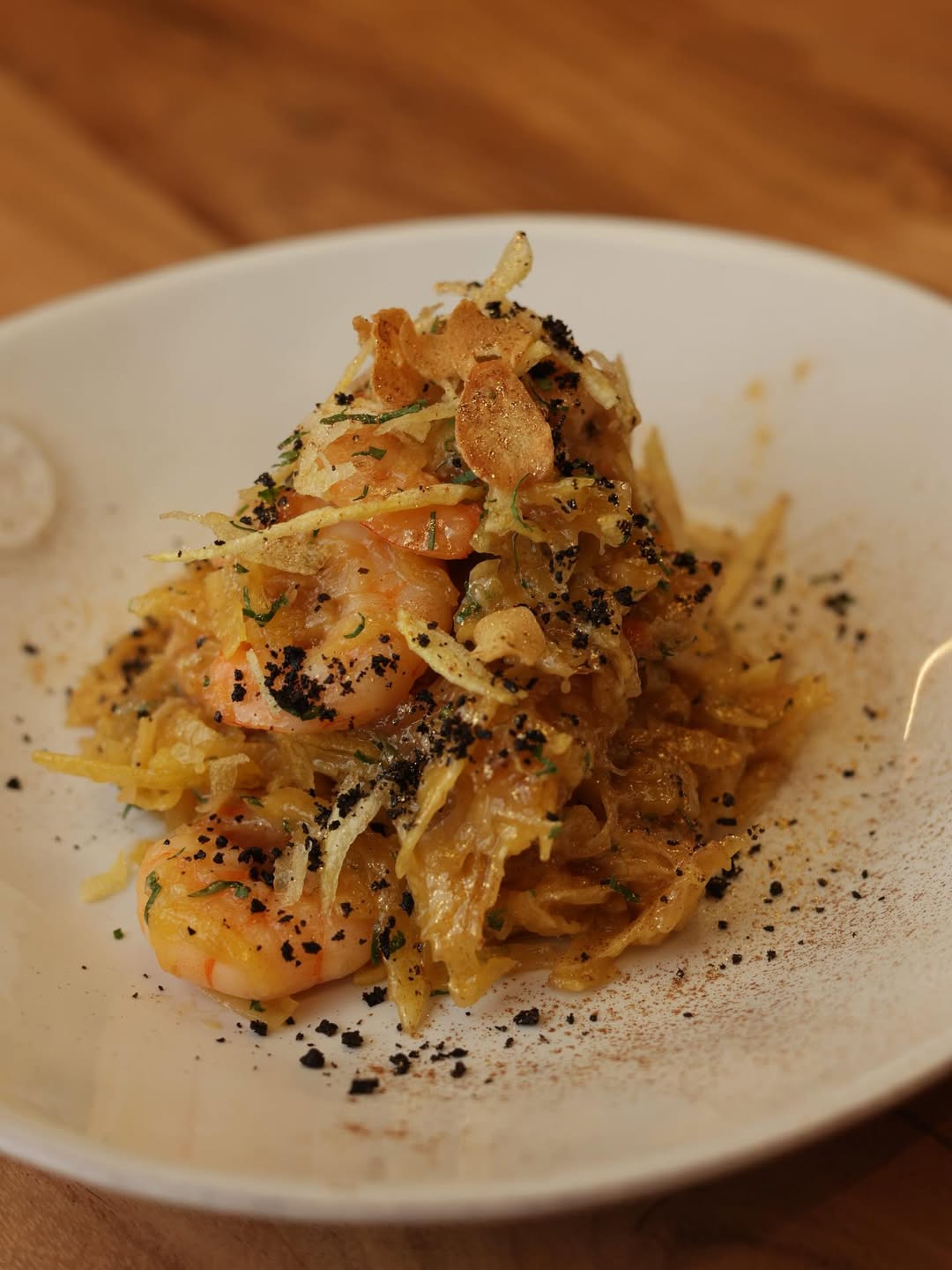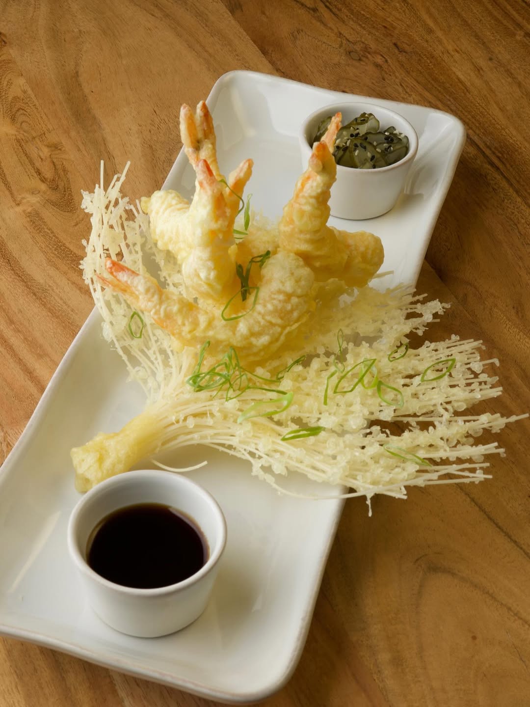 Aqui, há petiscos como lula frita com maionese negra (7€), bao de camarão (11€/2un), de barriga de porco ou de frango frito (9,50€/2un), pani puri de atum (7€/2un), salada de polvo (10,50€) e peixinhos da horta (7,50€).