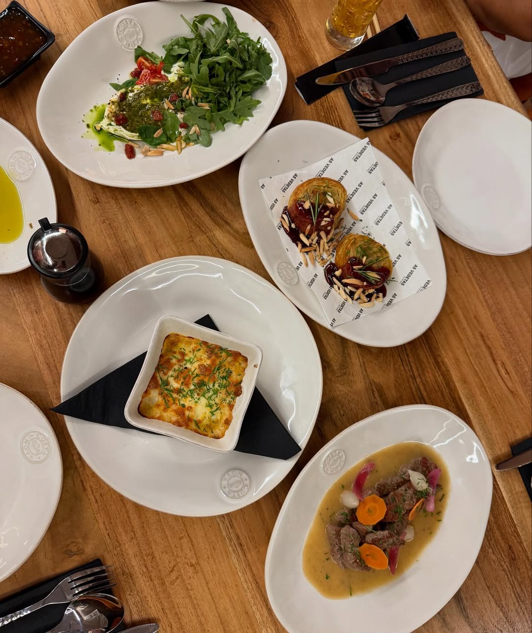 As vedetas também podem optar pelo prego de novilho (11€), pelas pataniscas da Amália com arrozinho (11€), pelas costeletas de borrego do Dubai, com molho de pistácio (11€), pelo escondidinho de vitela (9,50€), pelo frango teriyaki (12€), pelos secretos de porco preto (11,50€), pelas moelinhas estufadas (7,50€), pelo pica pau de novilho (14€) ou pelos ovos Illuminati (8,50€).