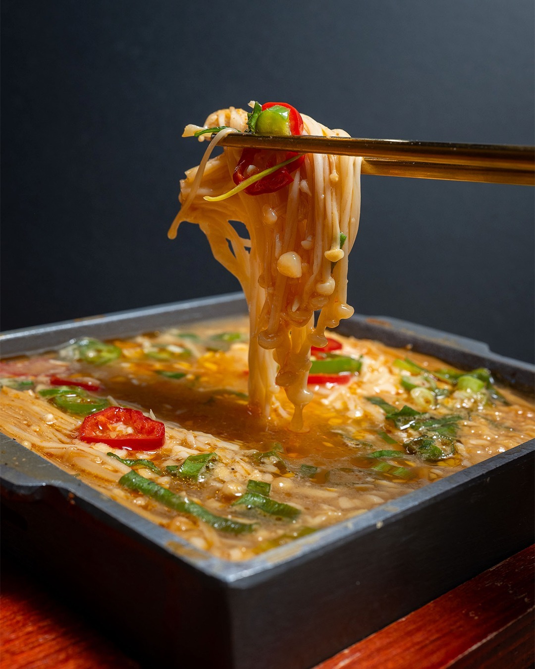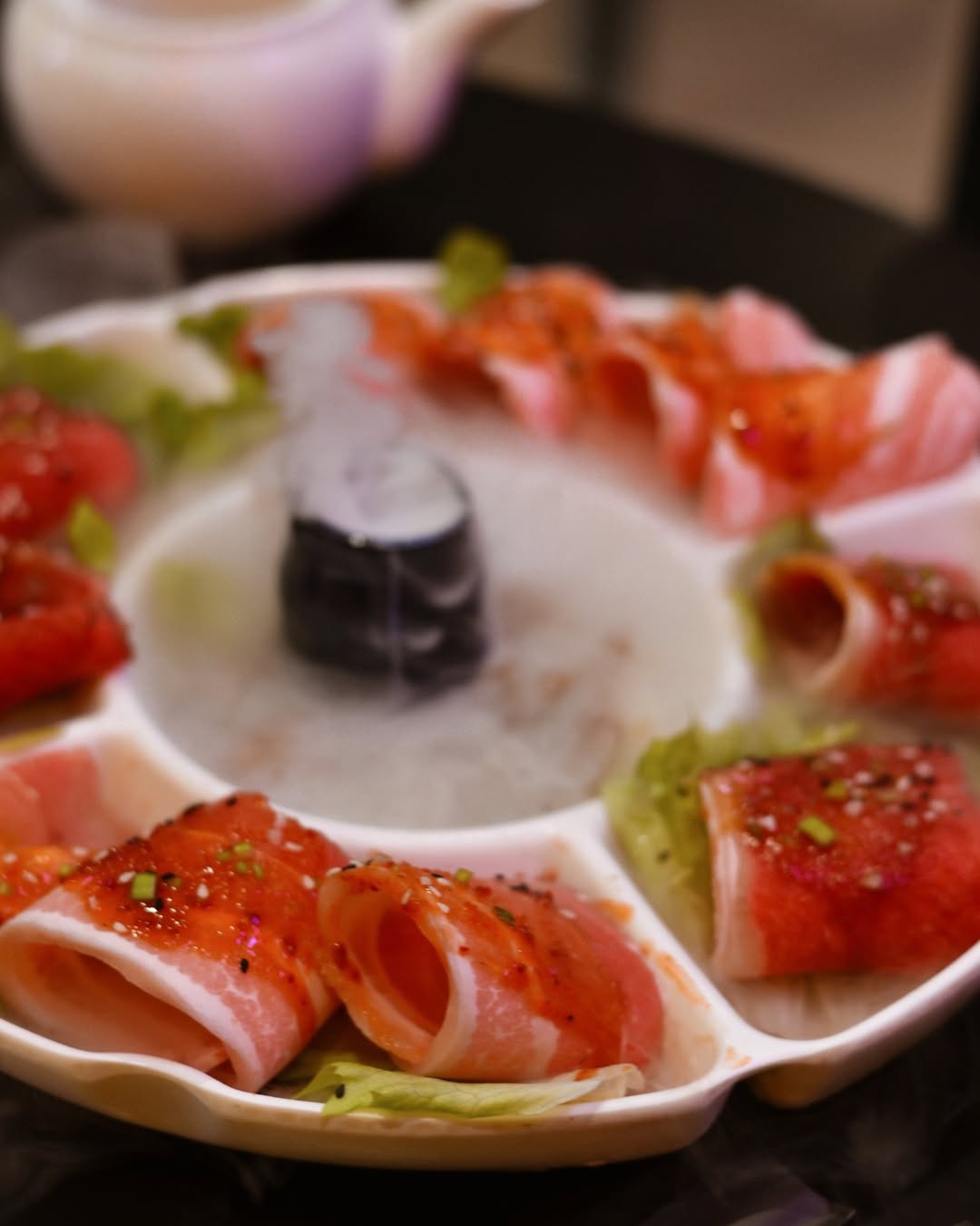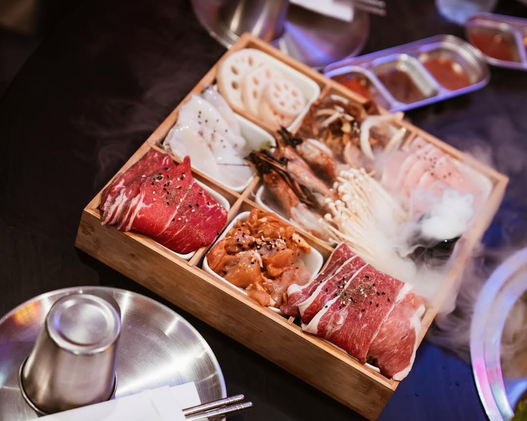 Assim, são os próprios clientes quem trata da sua refeição, que pode conter legumes, marisco, moluscos ou diversos tipos de carne com temperos típicos deste país asiático. Também existem vários acompanhamentos.