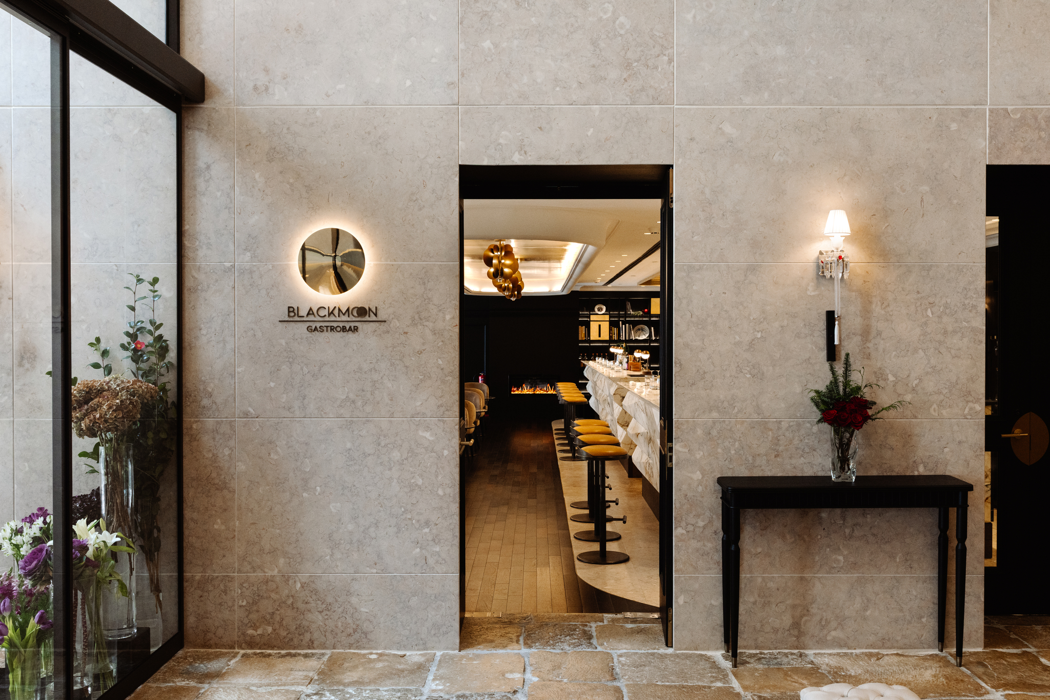 Num ambiente que combina mármore branco, tons dourados e preto profundo, o design do Black Moon junta elegância com intensidade. A luz, o som e o ritmo vão evoluindo ao longo do dia, com jazz e bossa nova pela manhã, e downtempo e cosmic funk pela noite dentro, criando uma atmosfera que muda com o humor da cidade.