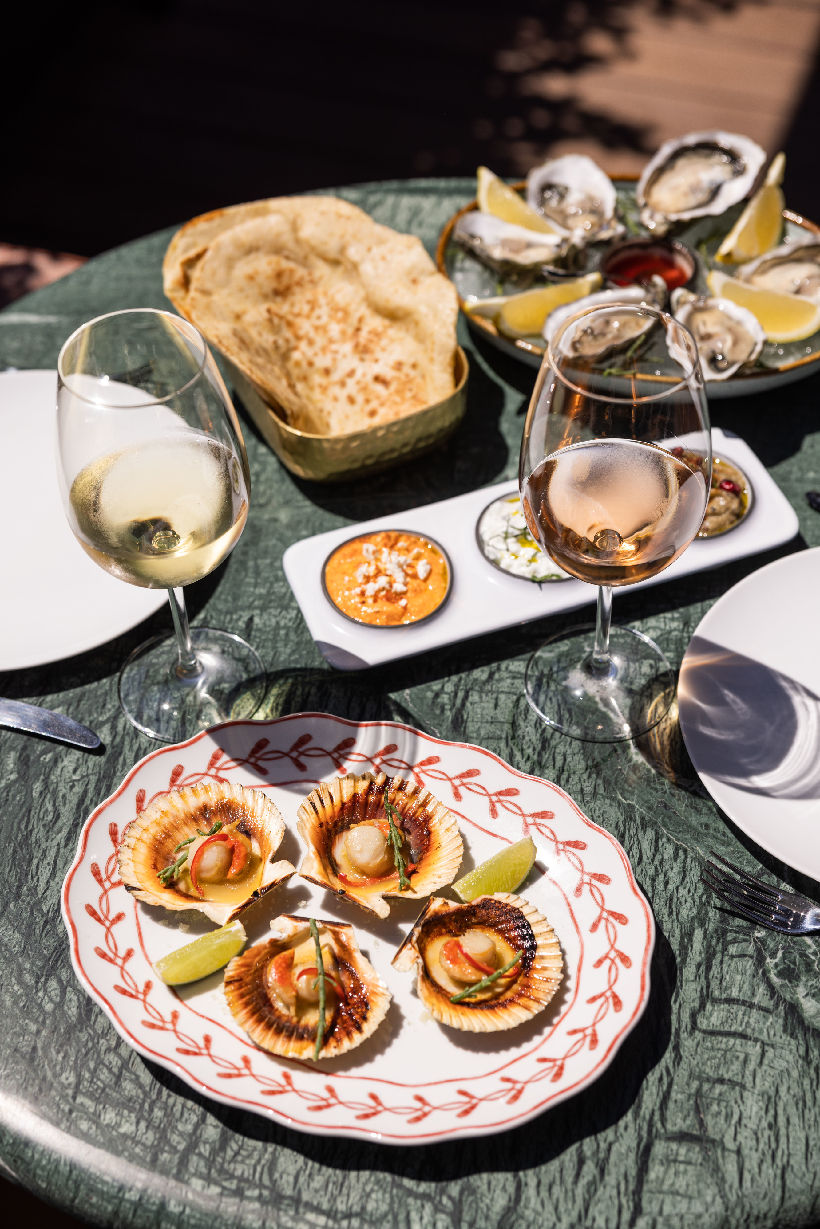 Este restaurante-bar na Marina de Oeiras inspirou-se nas cozinhas do sul de Itália, da Grécia, do Algarve e de Ibiza para a oferta gastronómica, que contempla opções como ostras ao natural (18€/6un), carpaccios de polvo (18€) ou novilho (17€), vieiras grelhadas (19€), gambas al ajillo (19€) e burrata com morangos macerados (16€).