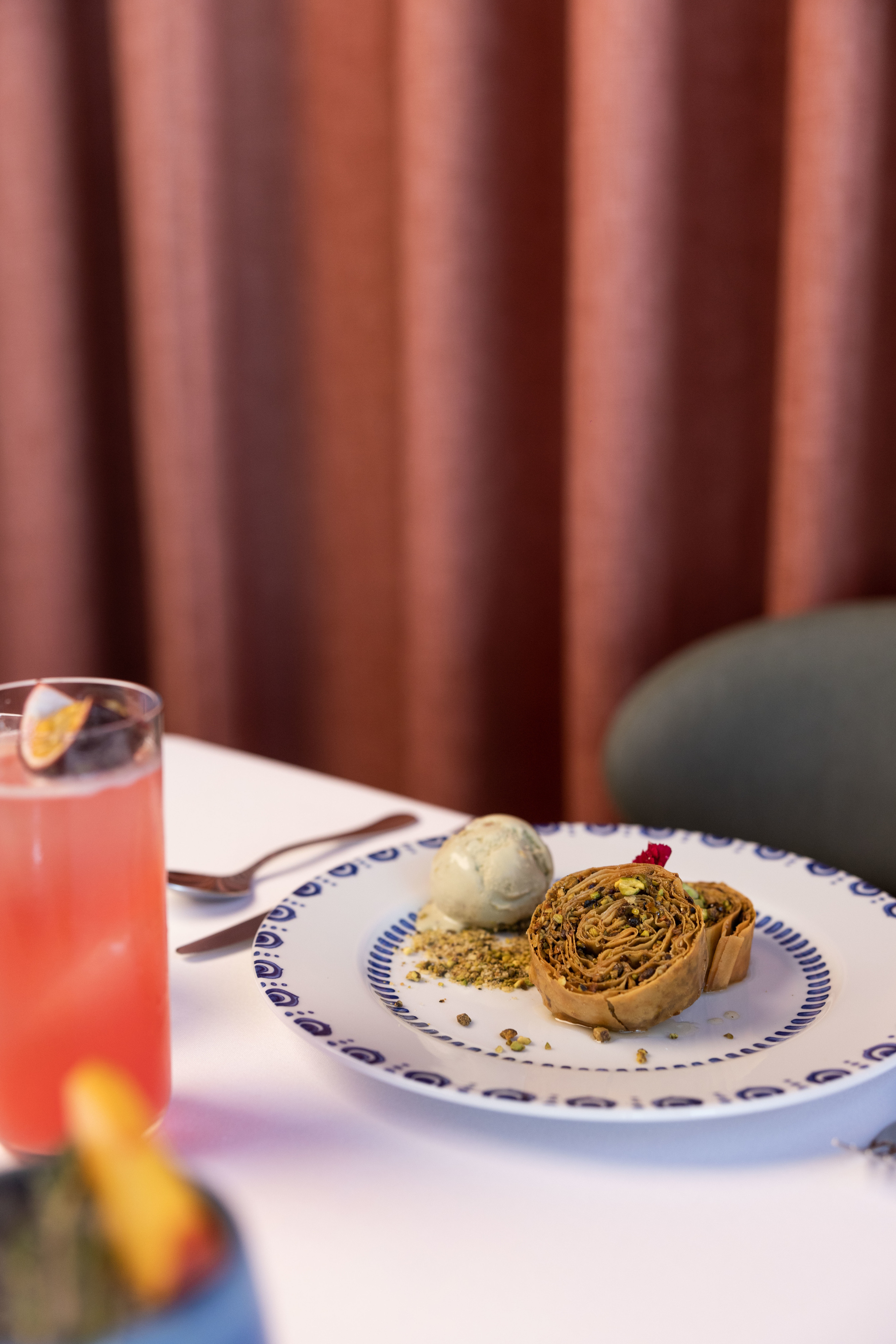 As sobremesas passam por sugestões como mousse de chocolate com flor de sal (6,50€), petit gâteau de caramelo (7,50€), tiramisù (7€) ou baklava e pistácio (8,50€). Para beber, há oito cocktails de assinatura (entre 12 e 16€), mocktails, vinhos, champanhes, espumantes e sangrias (com vinho tinto, rosé, espumante e champanhe).