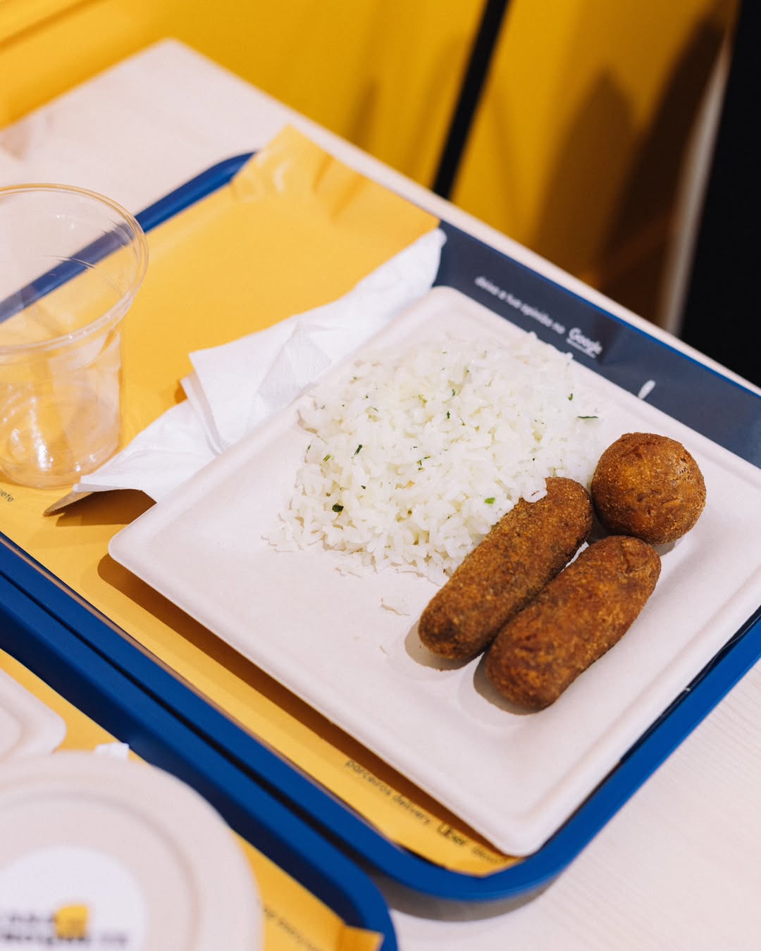 Também pode provar o croqburguer, dois croquetes tradicionais em pão de brioche com mix de alfaces com mostarda (6,50€). Para acompanhar, há arroz do dia (2,80€), sopa (2,20€), batata frita (2€) e molhos de mostarda e mel (0,40€) e maionese de pimentos (0,40€).