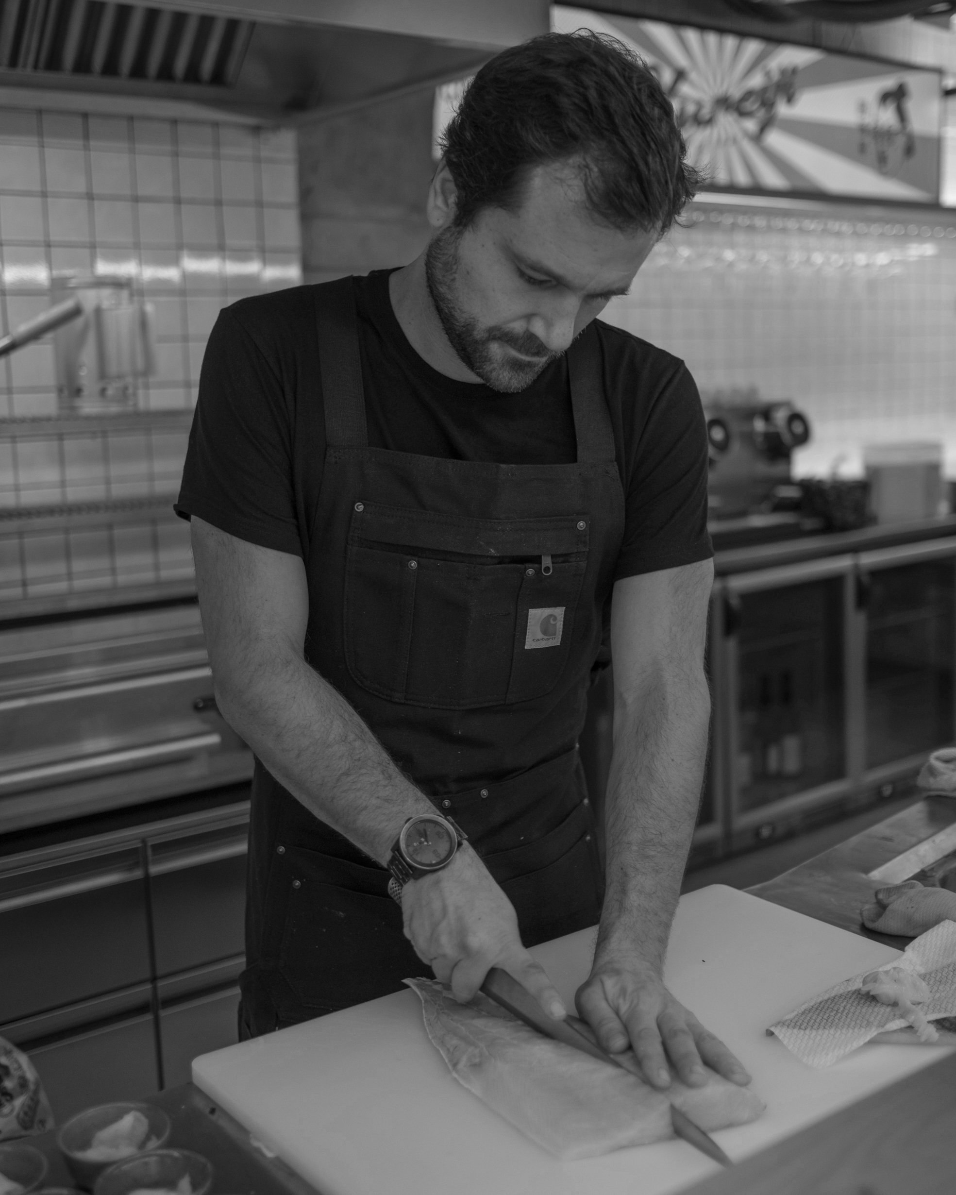 Durante anos, João Francisco Duarte foi o homem forte do Soão, em Alvalade, e foi nesse restaurante que fidelizou clientes e colocou meia Lisboa rendida aos seus talentos atrás de um balcão a trabalhar o peixe. Não foi então de admirar quando o chef deu o salto para um espaço à sua medida em março deste ano, que veio acrescentar ainda mais valor à Rua de São Paulo, onde, nos últimos tempos, têm surgido cada vez mais projetos gastronómicos.