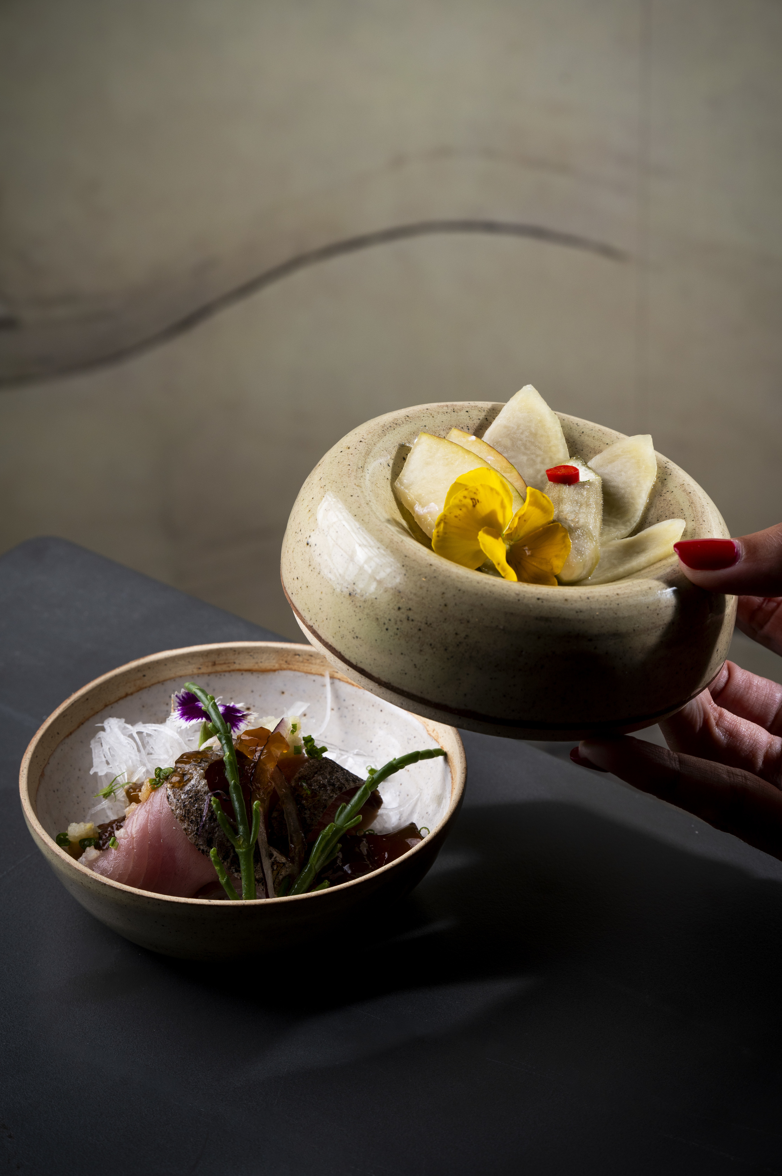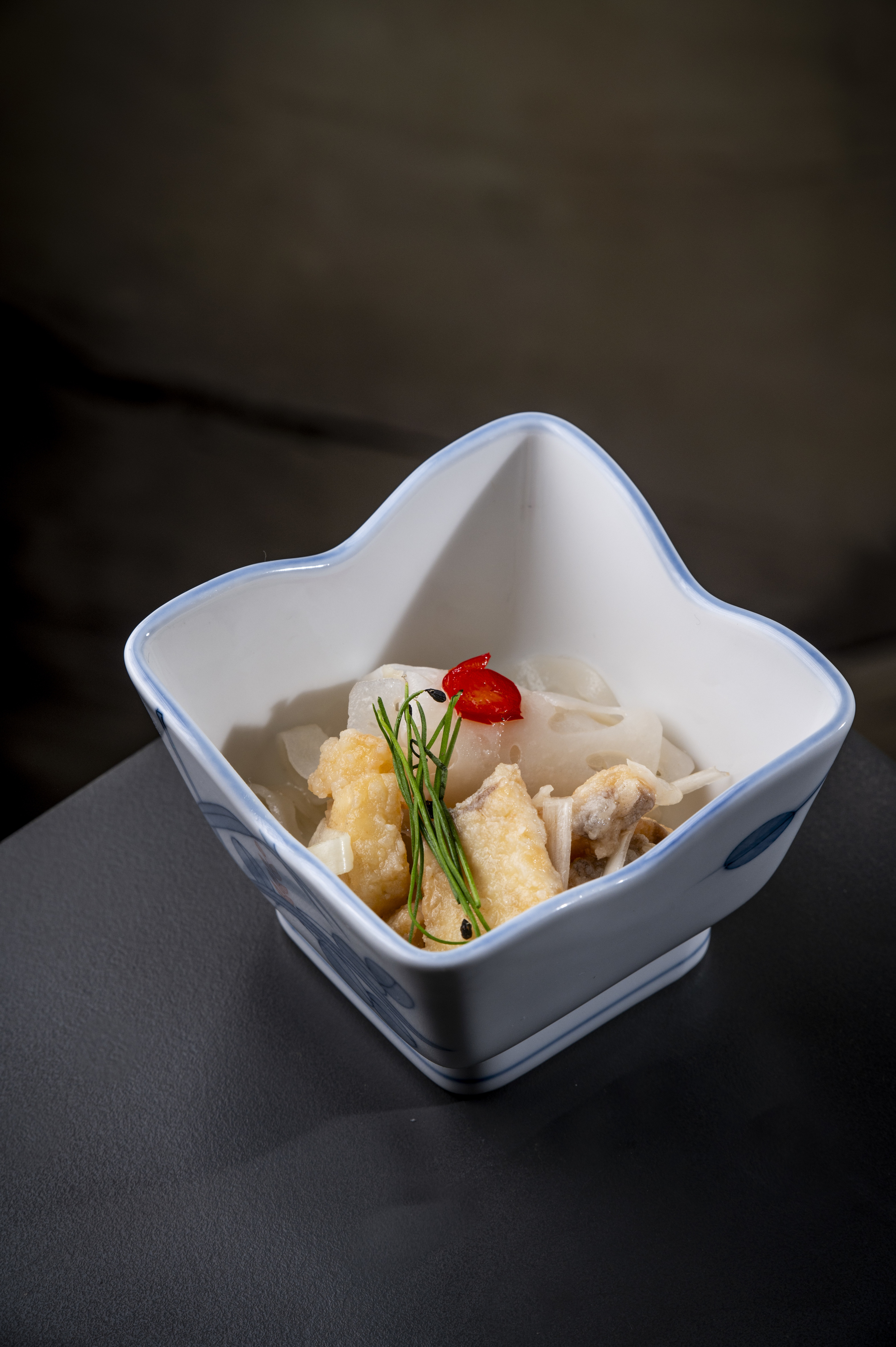 O menu do do restaurante é construído com base nos ingredientes mais frescos disponíveis, cuidadosamente selecionados para compor cada prato com precisão, técnica e sensibilidade. Como manda a tradição omakase, cada refeição é uma surpresa guiada pelo saber e intuição do chef, tornando cada visita uma experiência única e que não se repete.