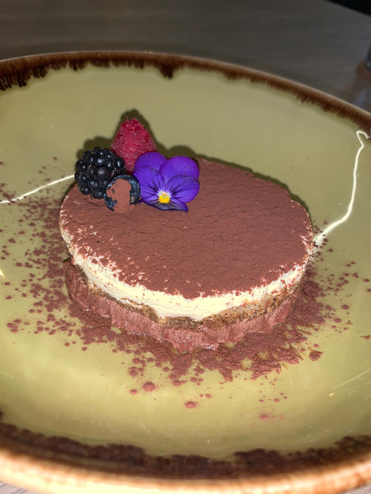 Para sobremesa, comemos o tiramisù (10€). A nível das bebidas, há ofertas como cocktails a 15€ (como pornstar martini) e de assinatura desde 16€ (como o Elderflower Royal, com licor de flor de sabugueiro, menta fresca, framboesa fresca e prosecco).