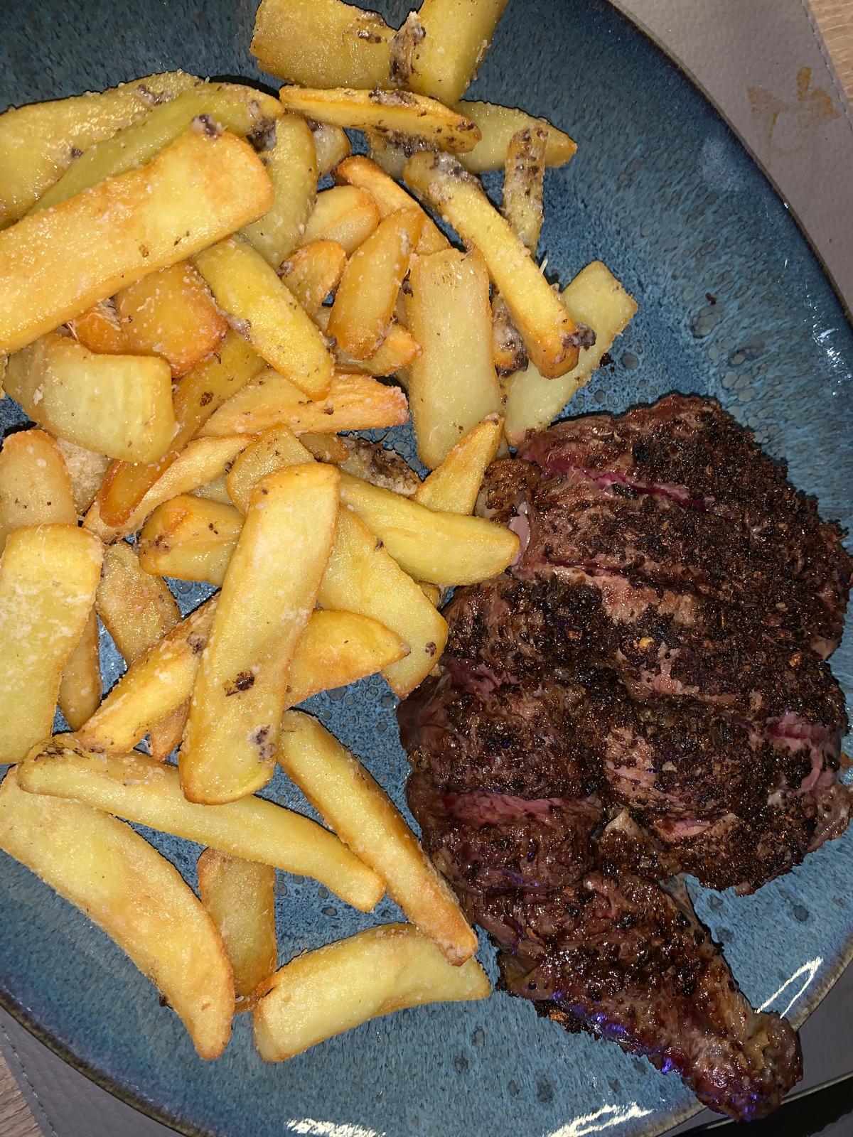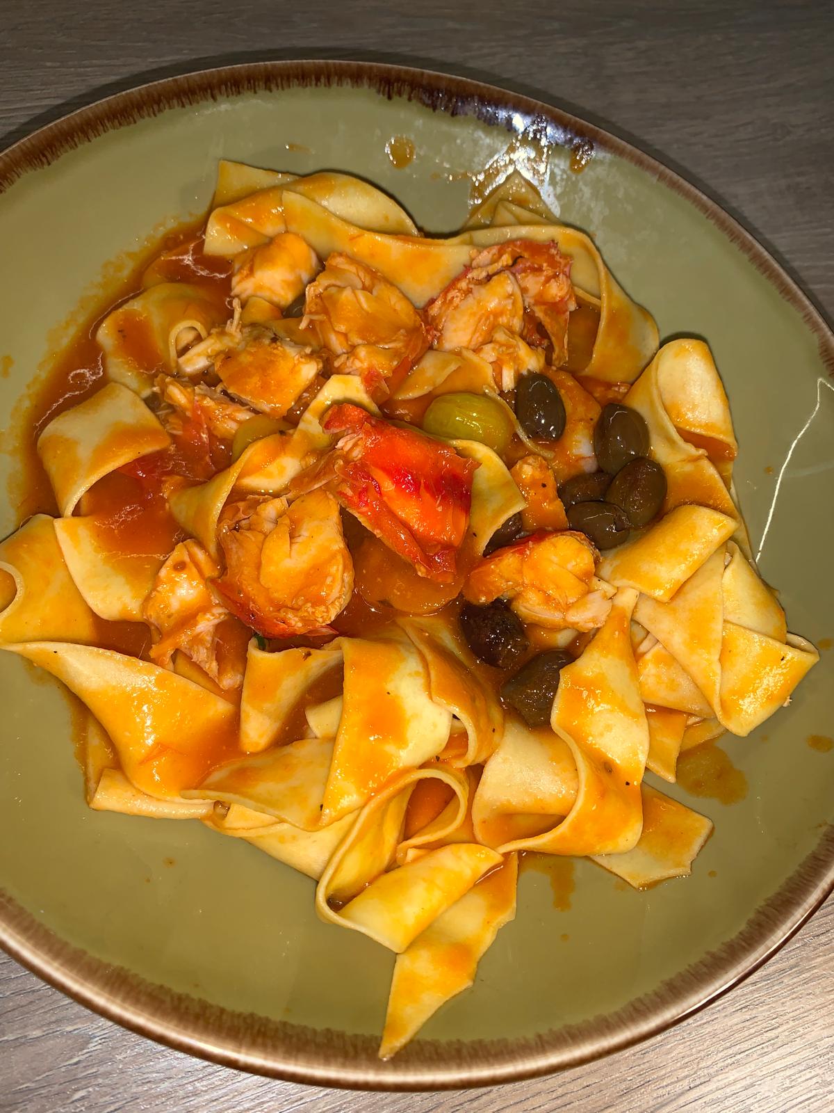 Também experimentámos o pappardelle de lagosta e camarão com tomate cereja, azeitona riviera, molho de tomate e salsa (24€) e o ribeye maturado com porcini, alho assado e alecrim (35€). Cada um por motivos diferentes, não resultaram.