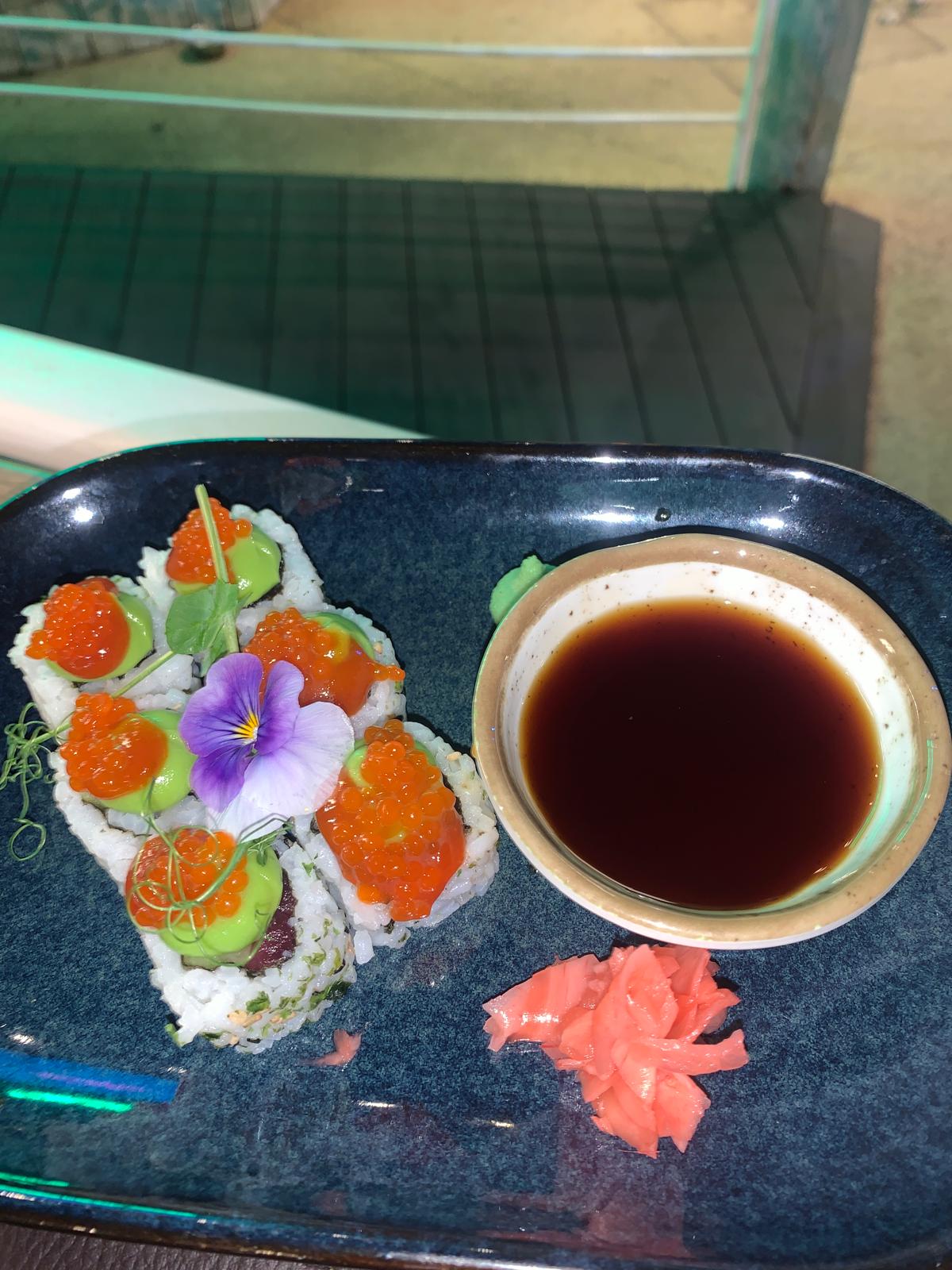 O rolo de atum picante com pepino, abacate, maionese de jalapeño e caviar (12€) é ótimo, mas os bites de frango frito havaiano com cebolinho, sementes de sésamo e molho filipino (10€) surpreenderam-nos mais. Ainda no atum, provámos os tacos de tártaro de atum ahi ou salmão com maionese picante, coentros e tobiko (16€/2un), um dos destaques da noite.