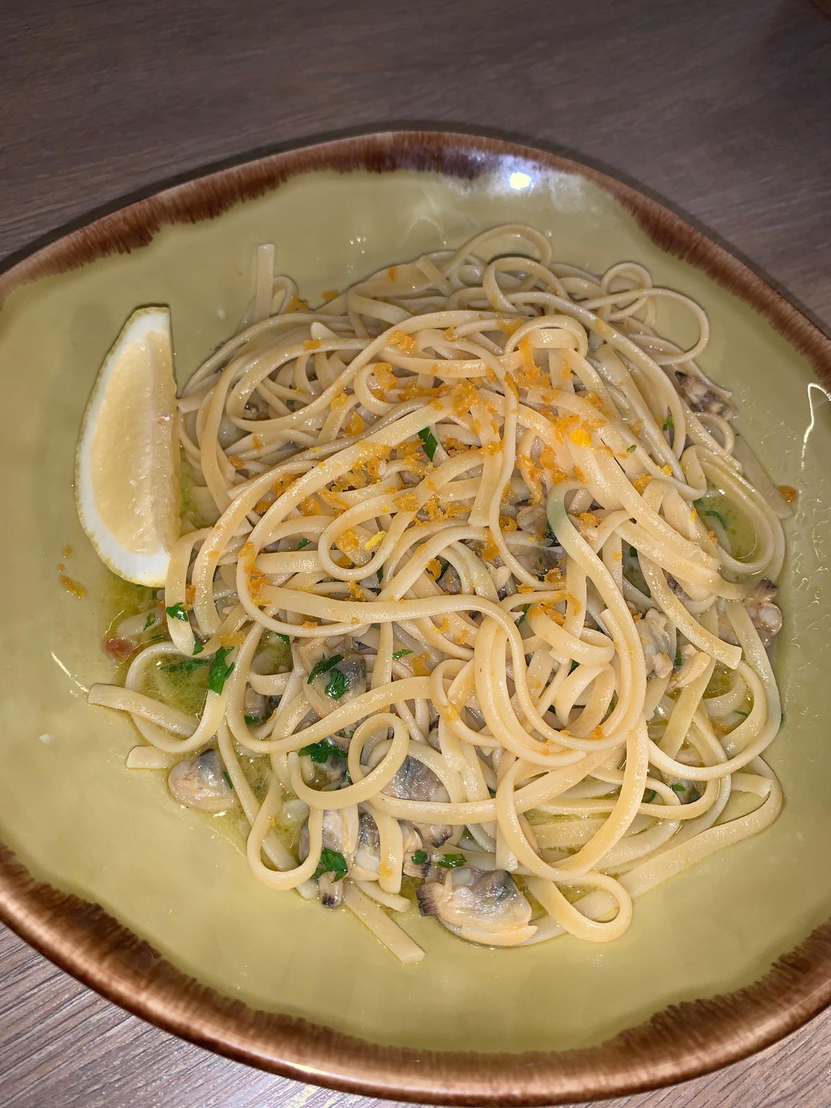 Mas, infelizmente, não chegou para compensar o resto. O prosciutto di parma com mozarella fresca e tomate cereja confitado (15€) também não estava mau, mas os pratos principais foram tiros ao lado. Provámos os camarões na grelha com manteiga de estragão e limão (27€) e o linguini com amêijoa, bottarga, limão e azeite hojiblanca (20€).