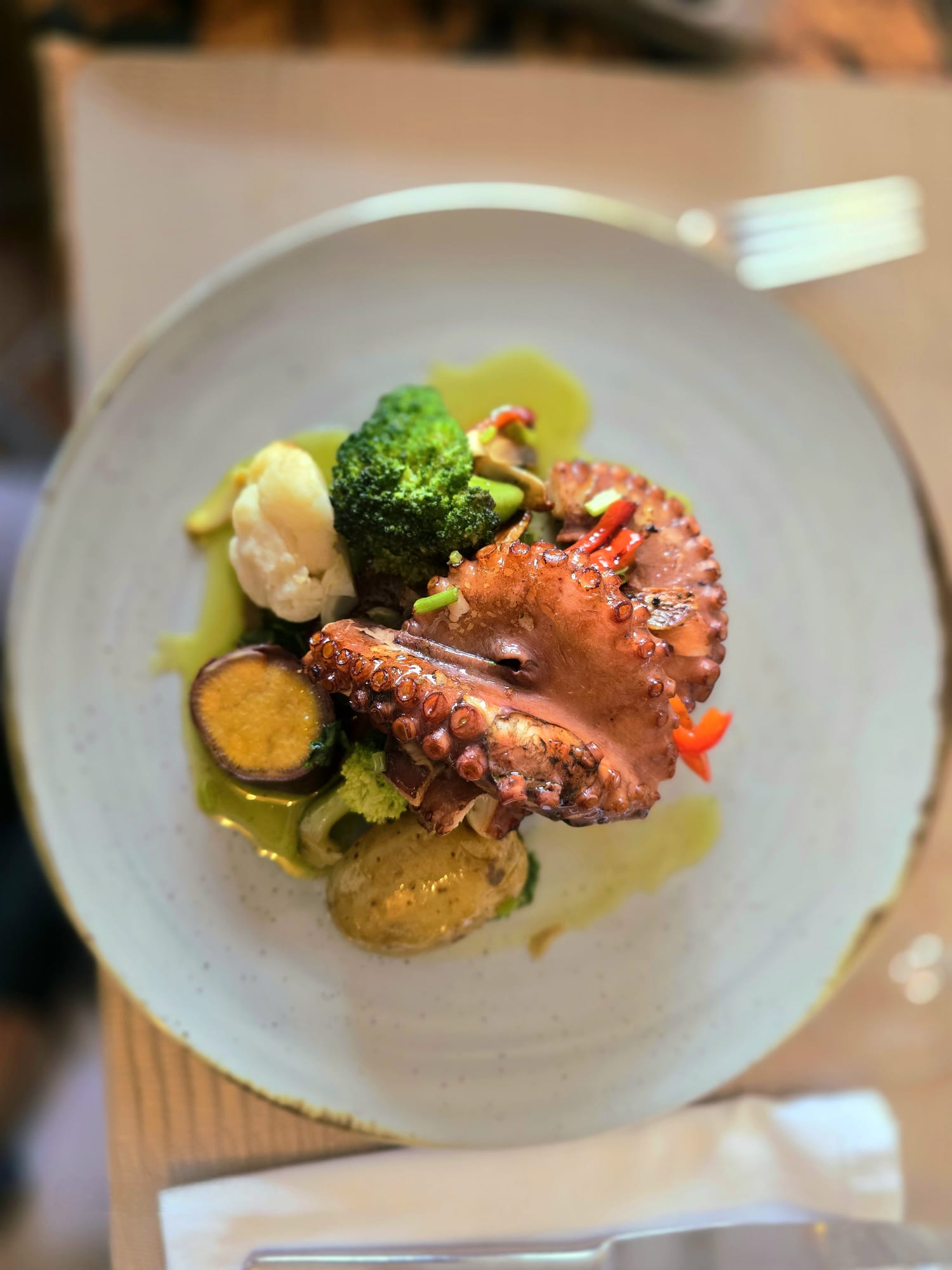 É "tudo feito na hora, sem pressas nem atalhos", incluindo as sobremesas e os gelados, também feitos pela casa. O destaque vai ainda para a extensa carta de vinhos, com referências de todas as regiões de Portugal e do mundo — Douro, Alentejo, Bairrada, Dão, Setúbal, França, Alemanha — desde os 15€.