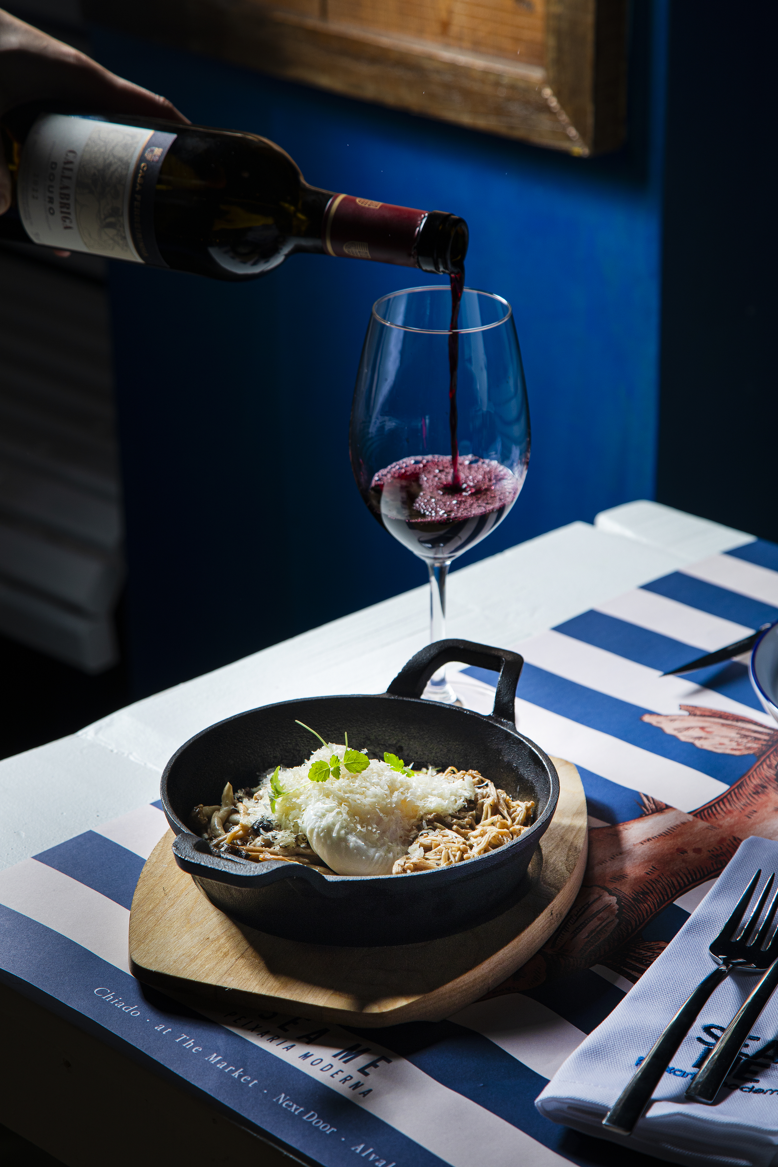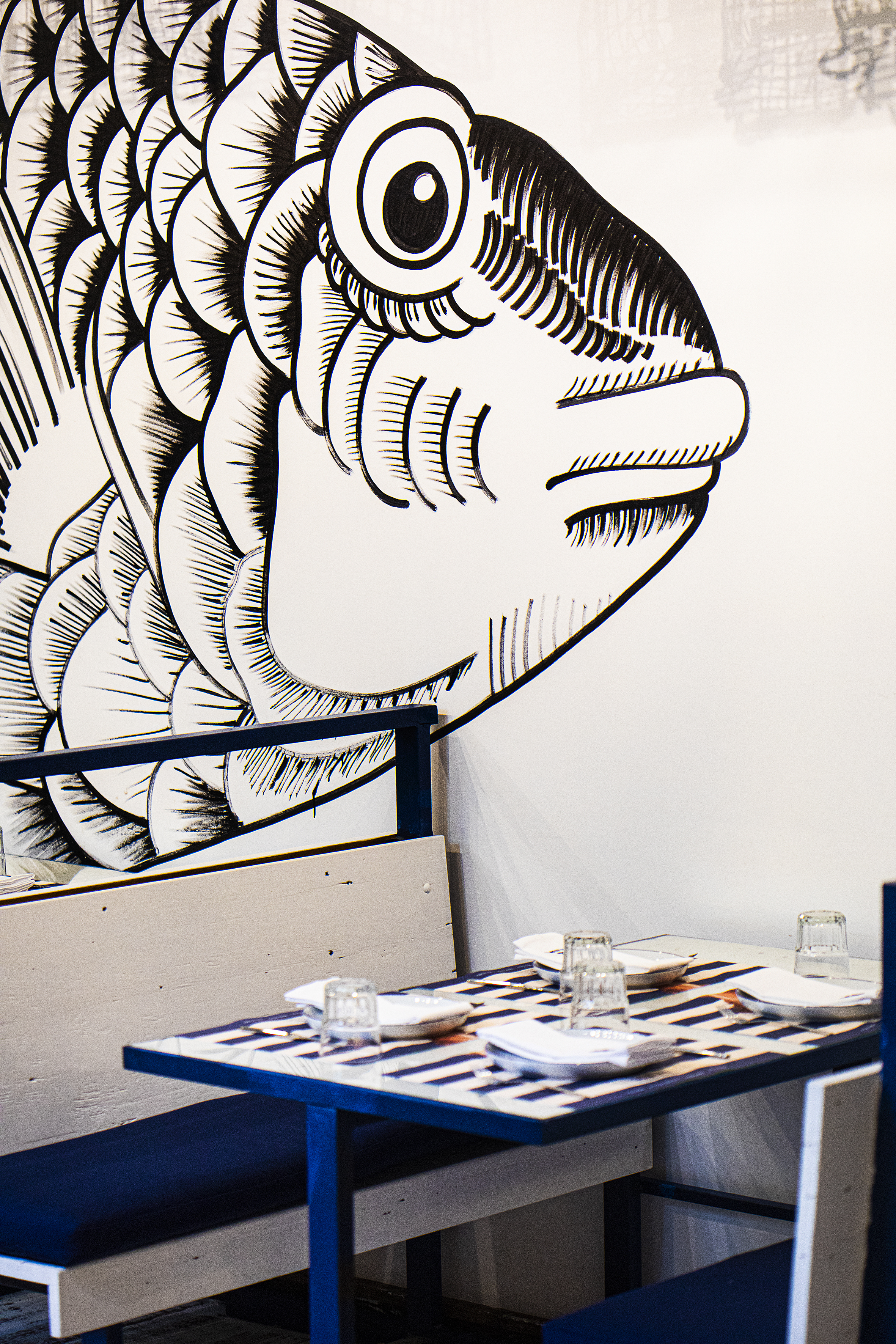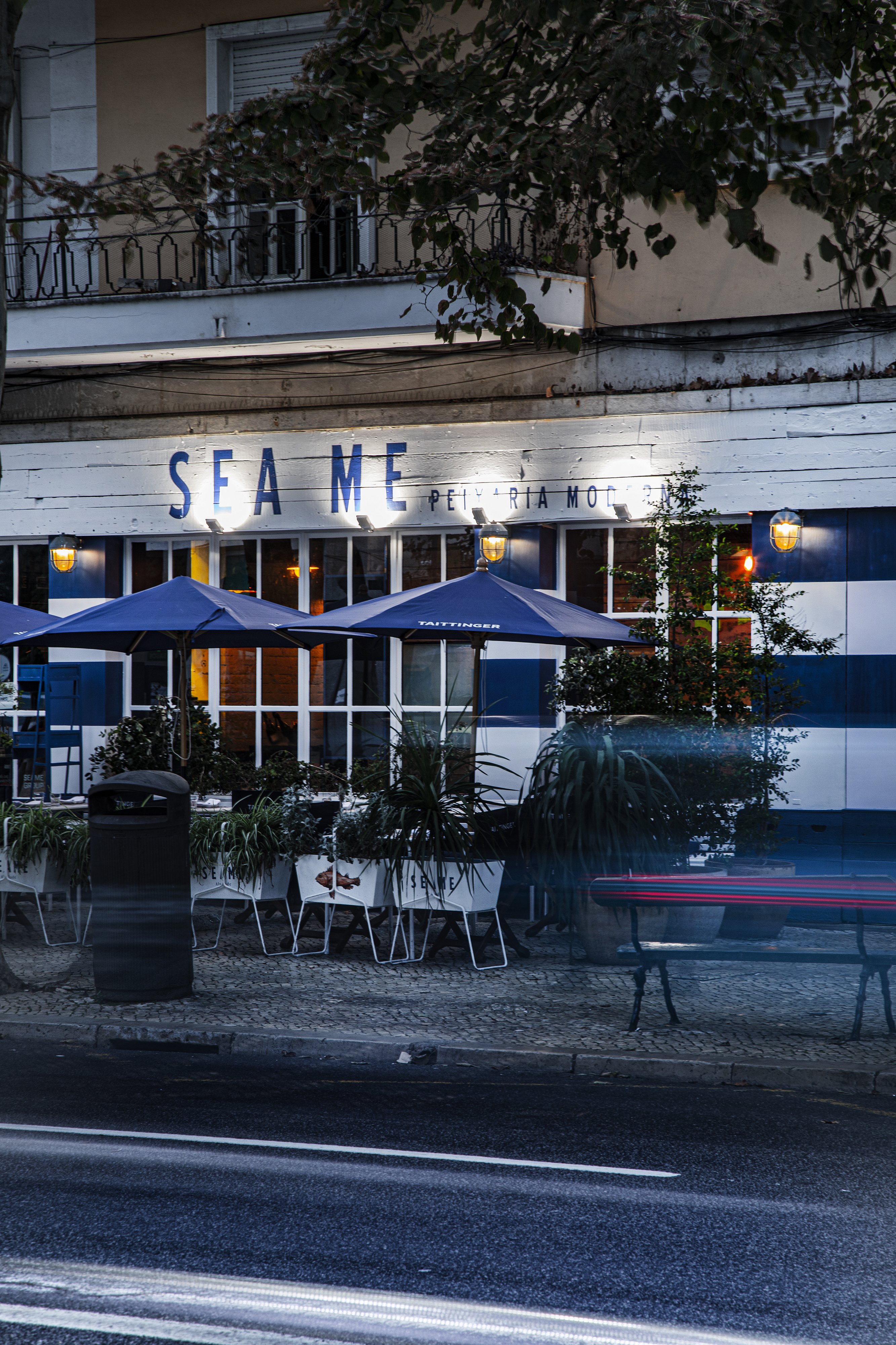 Esta peixaria moderna com esplanada conta ainda com um bar móvel de ostras e champanhe, tendo como parceiro o champanhe Taittinger. A carta de vinhos conta com 13 possibilidades a copo e, ainda para beber, há três cocktails especiais: o Bellini by Taittinger (9,50€), o Aperol Spritz (9,50€) e o Moscow Mule (12€).