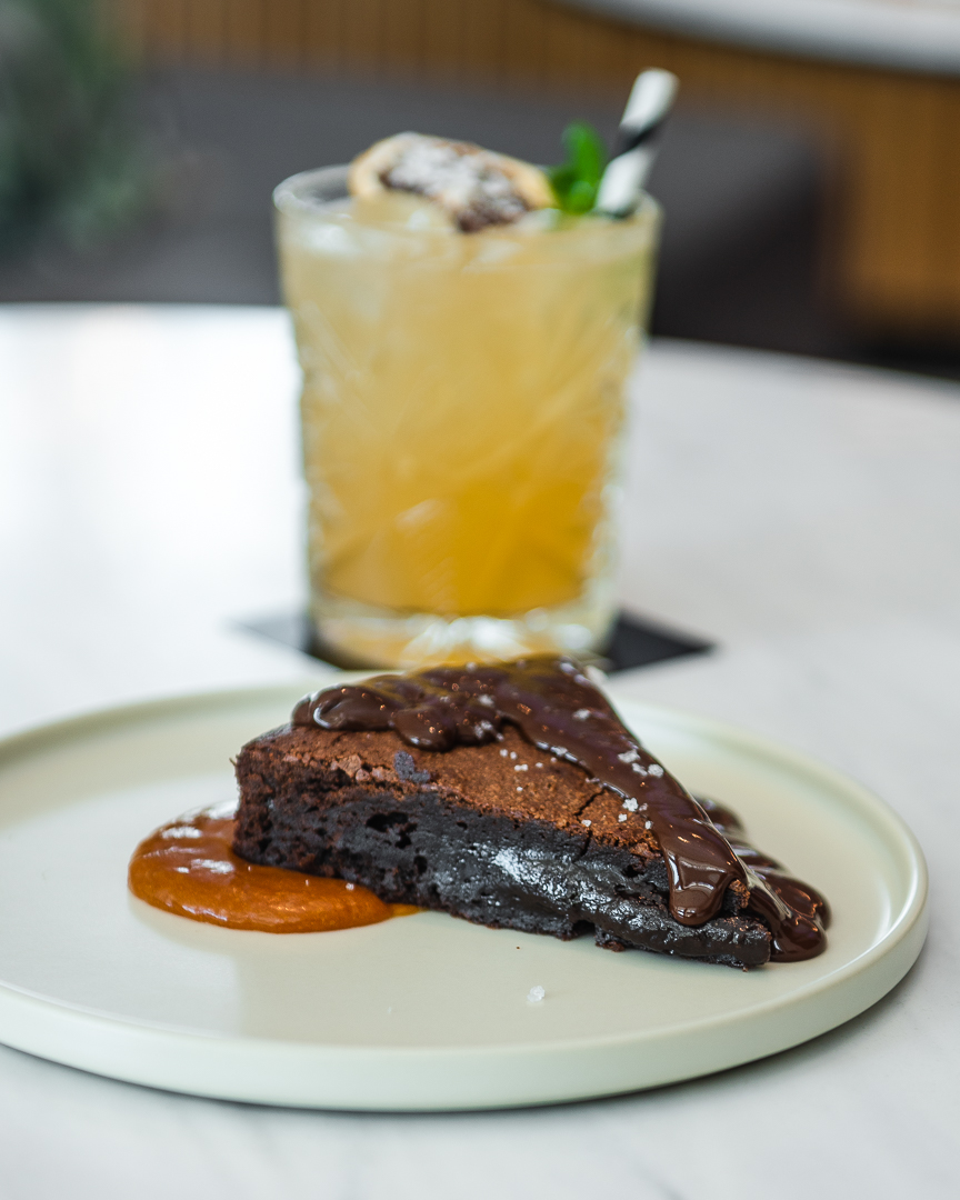 Como sobremesa, pode optar pelo bolo de chocolate cremoso com ganache de chocolate, caramelo toffee e flor de sal (8€) ou pela mousse de lima cremosa com chantilly, crumble crocante, raspas de lima e micro verdes de lima (9€), entre outras propostas apetitosas.