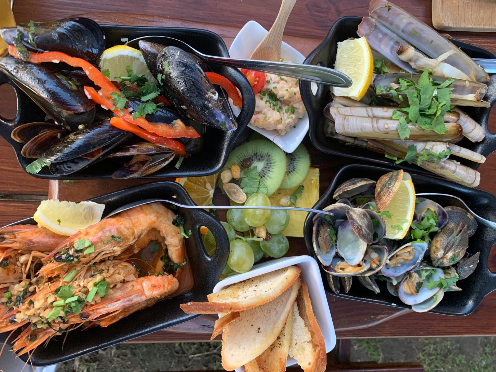 "O que aconselhamos é duas tapas e uma tábua", explica-nos Marco Butes. "As tábuas são aquilo que nos carateriza", reforça, sobre tábuas como a do mar, que enche as medidas de qualquer um com camarão al ajillo, amêijoas à Bulhão Pato, mexilhão à Moment, lingueirão à Bulhão Pato, tostas, paté de delícias do mar e fruta da época (50€).